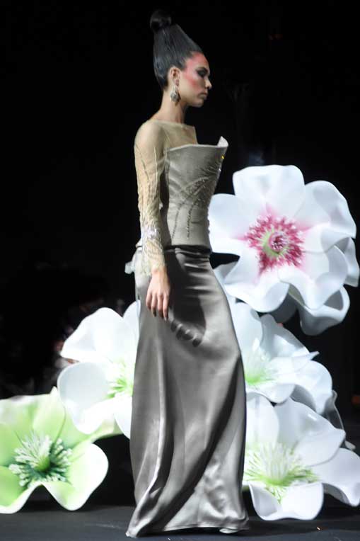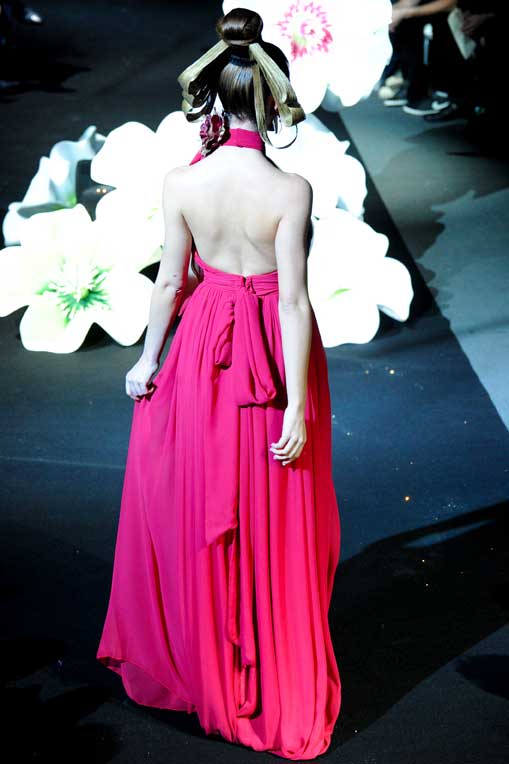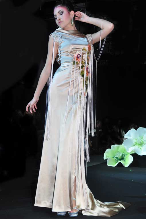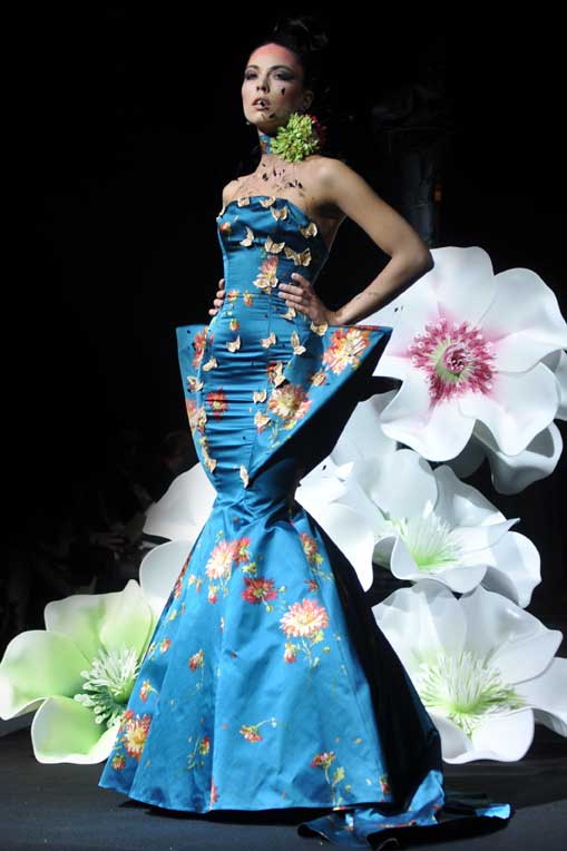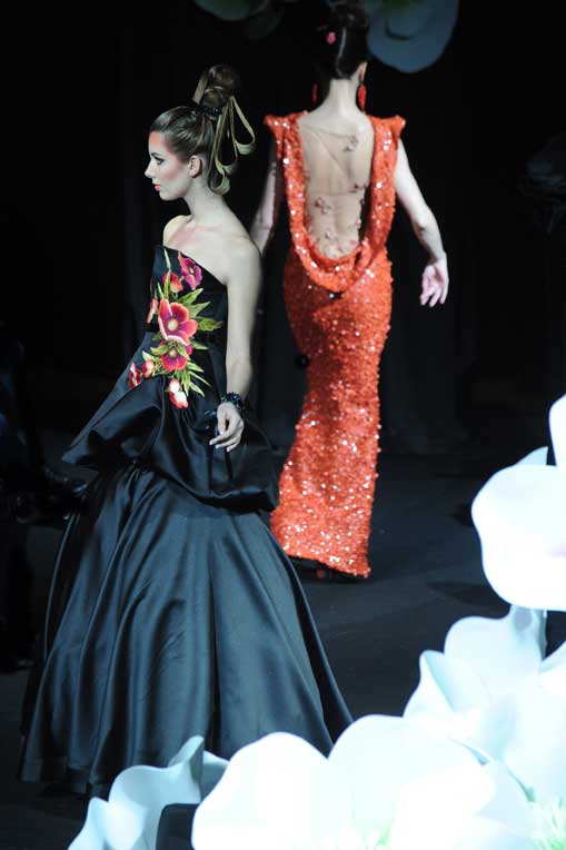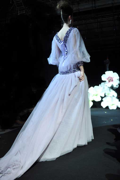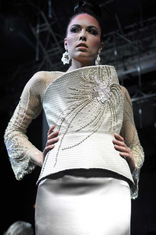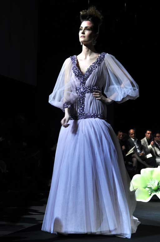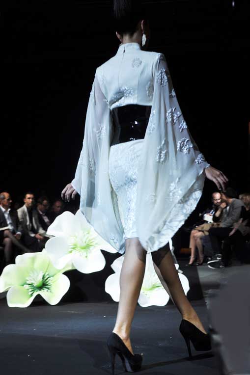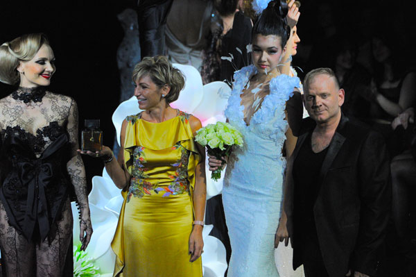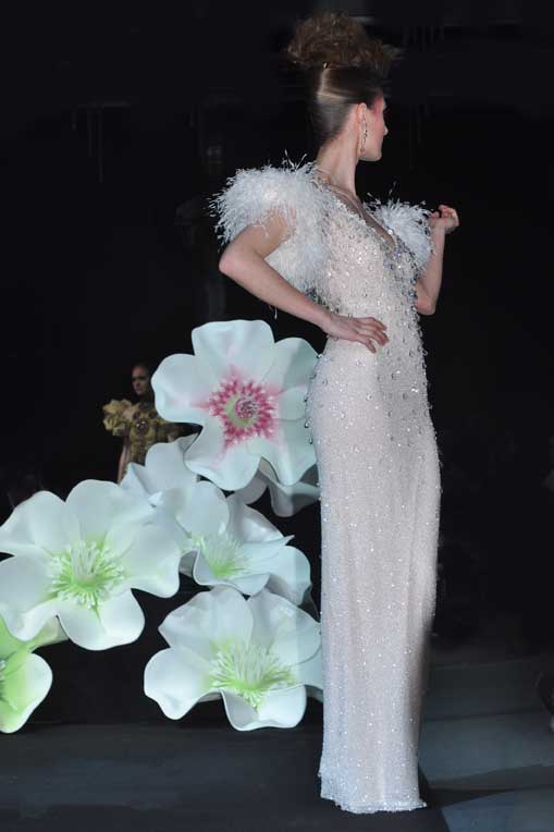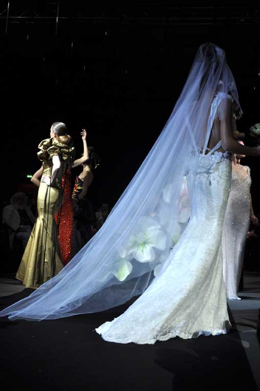On March 28, at the Palm Beach, French fashion designer Denis Durand presented his annual fashion show on the occassion of the Cannes Shopping Festival, showcasing fifteen sophisticated day dresses and fifteen evening dress and the highlight of the evening – the wedding dress. At the end of the parade, Denis Durand launched his first perfume tailor-made by perfumer Micallef, renowned for its deluxe fragrances presented in marvelous hand-decorated bottles.