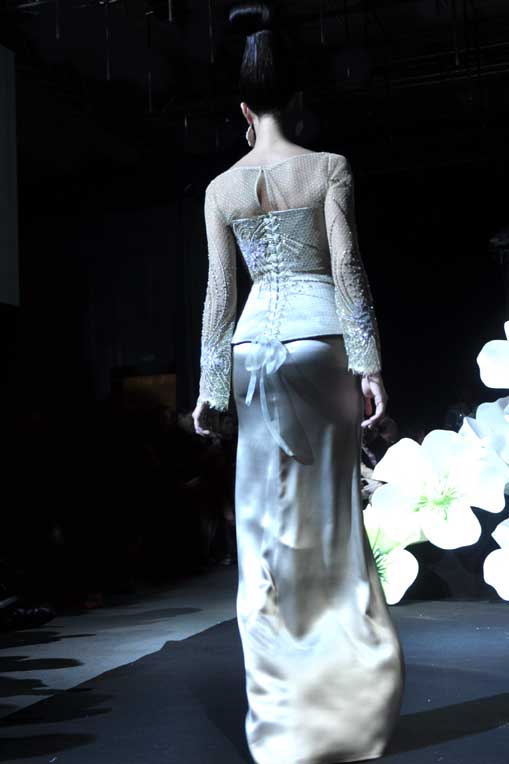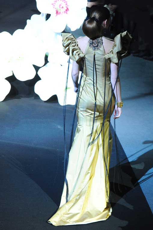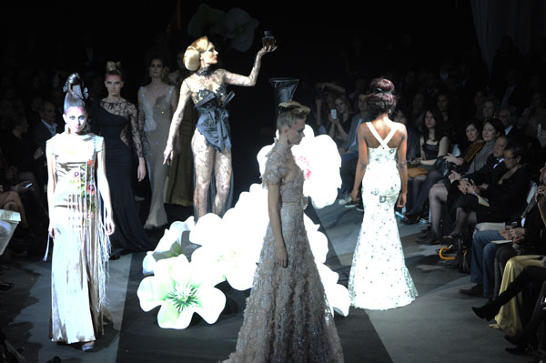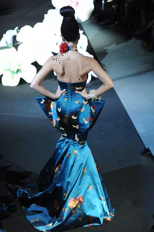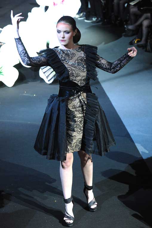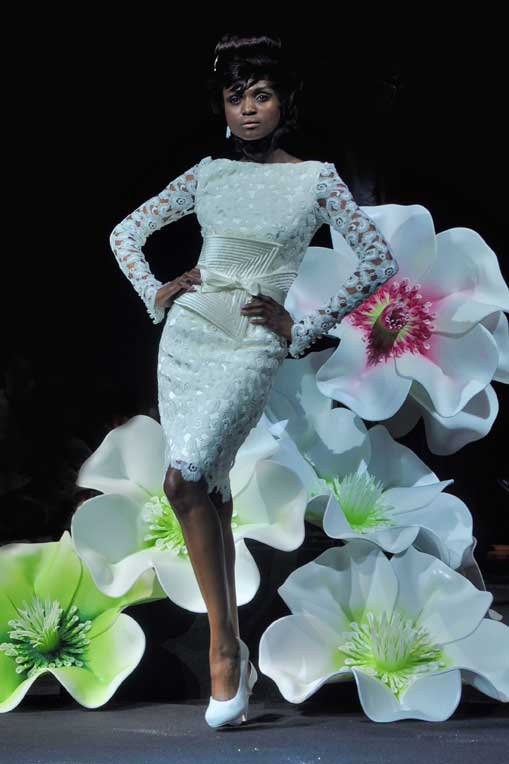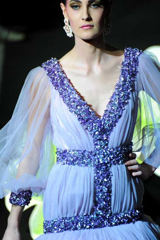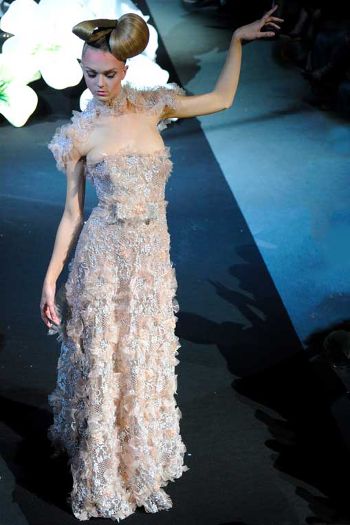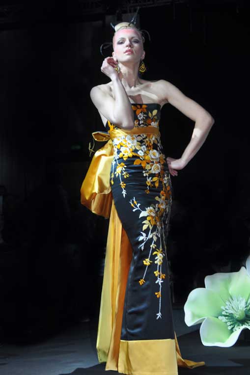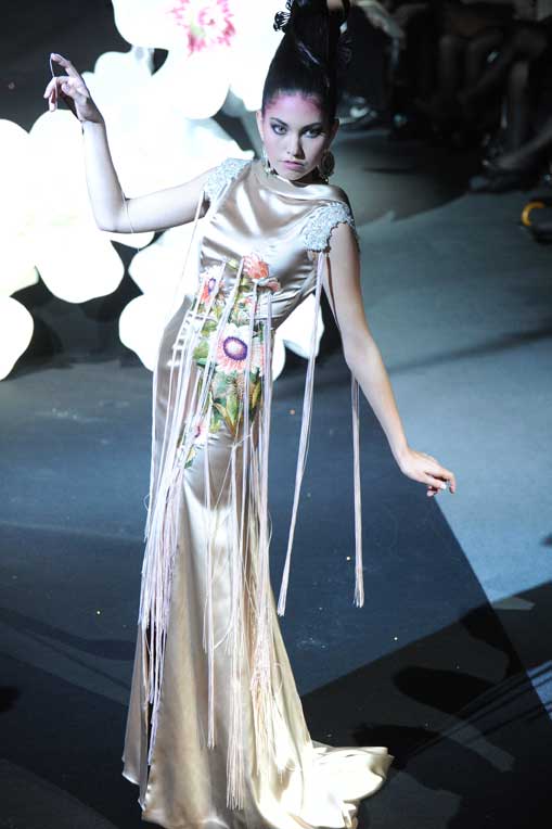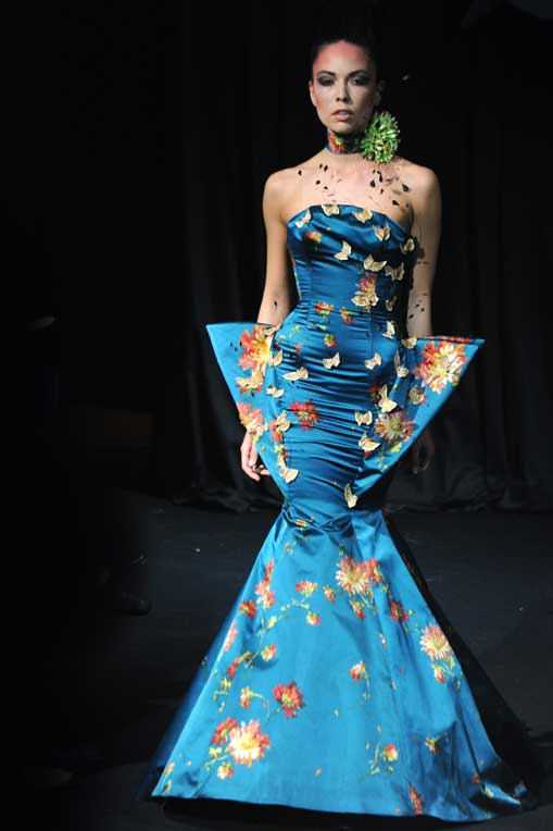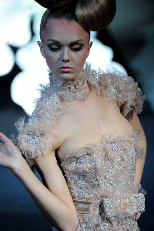 On March 28, at the Palm Beach, French fashion designer Denis Durand presented his annual fashion show on the occassion of the Cannes Shopping Festival, showcasing fifteen sophisticated day dresses and fifteen evening dress and the highlight of the evening – the wedding dress. At the end of the parade, Denis Durand launched his first perfume tailor-made by perfumer Micallef, renowned for its deluxe fragrances presented in marvelous hand-decorated bottles.