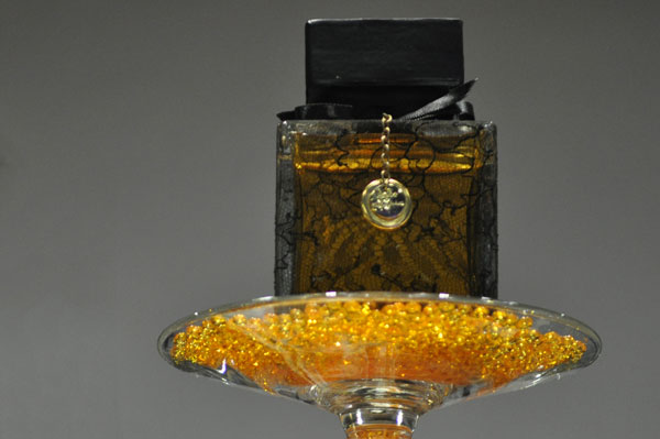 The Parfum Couture Denis Durand for M. Micallef composition explodes on citrus head notes spiced with cinnamon. Intense and complex, the heart and the base cleverly balance the rose, orange blossom and honey softness with the strength of animalis and woody notes. Dressed with hand sewn delicate Chantilly black lace, the bottle is adorned with a little satin bow and a golden medal with the initials of the two artists.