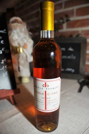 Denis Fetisson explains: “I wanted to pay tribute to the great actress and the lover of wine and the Mediterranean. I called this log of her name, with her consent.”. The recipe of the Christmas log will perfectly match with the moscato “passito” Sangue d’Oro. The passerillé delicate wine with great class he put on his carte, the wine Carole Bouquet nurtures with passion on the island of Pantelleria.
