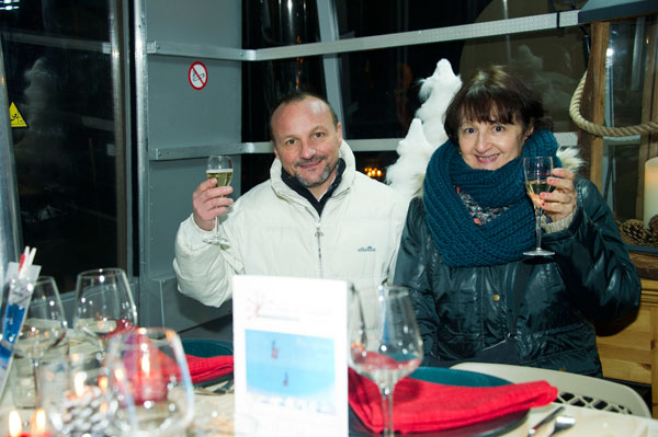 Together in the ephemeral restaurant, around the festive table laid in the cabin of the cable car and superbly dressed by Dec’Auron, 12 guests let themselves be won over by the excitement of the departure.