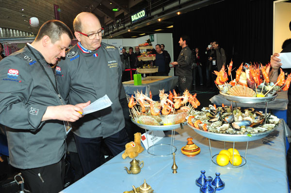 A prestigious jury had the difficult task to decide between the candidates; it consisted of Fabrice Sibilla, restaurant Sellarier at the Halle Paul Bocuse in Lyon, winner of the 2nd Ecaillers World Cup, Michel Roth, MOF, executive chef at Wilson Palace in Geneva, Jacques Laurency, MOF, executive chef, Sophie Fernandez, MOF, fishmonger-fish scaler-caterer, David Gomes, MOF, fishmonger-fish scaler-caterer, Etienne Chavrier, MOF, fishmonger-fish scaler-caterer, Cédric Bejaoui, MOF, fishmonger-fish scaler-caterer, and Jean-Jacques Cadoret, oyster farmer.