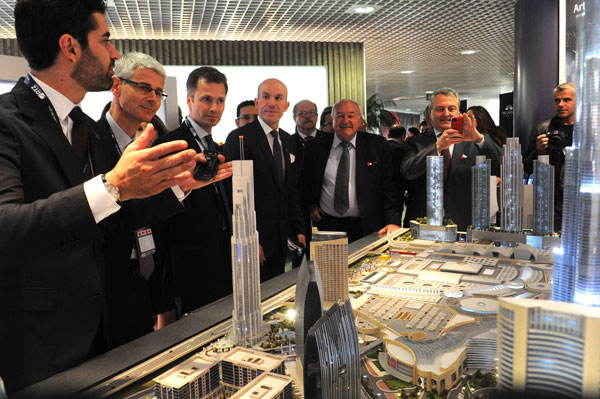 At Mipim 2014, the Emaar Properties stand received the visit of the inauguration delegation led by Reed MIDEM CEO Paul Zilk and MP-Mayor of Cannes Bernard Brochand who admired the models of the Centre of Now.