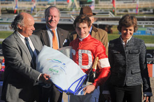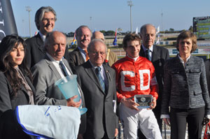 Before the races, by late morning, Mr Bertrand Bélinguier, President of France Galop, in the presence of Senator-Mayor of Cagnes sur Mer Mr Louis Negre expressed his worries about the recent European law ordering the application of a normal 19,6 % VAT rate (instead of the reduce 7% one) to the race horses trade. This could jeopardise all the positive efforts realised in the past years for the horse race activities, a sector creating growth and employment.