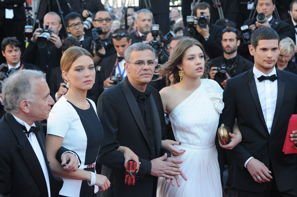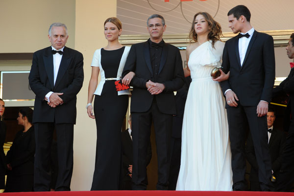 Steven Spielberg and his Jury of the Festival de Cannes 2013, revealed this evening the prizes winners during the Closing Ceremony. On the stage of the Grand Théâtre Lumière, French Acytress Audrey Tautou and Uma Thurman presented Abdellatif Kechiche with the Palme d’Or for his film Blue Is The Warmest Color