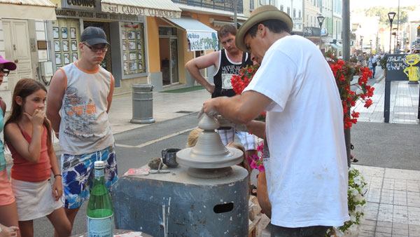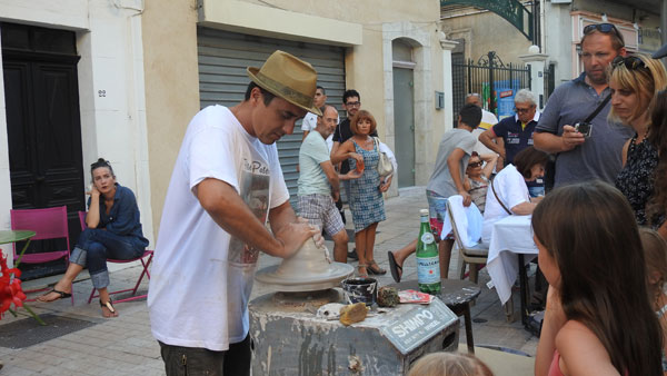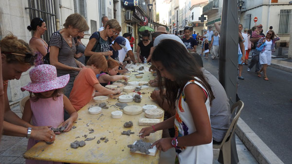 The artisans settled in the streets invited young and old children to attend demonstrations of turning, cooking and decoration in workshops spread across the center of Vallauris. Each visitor could discover the skills of these talented artisans while participating in the manufacture of a small pot, a vase or a taraïette (small Provençal pot) they could then take away as a souvenir.