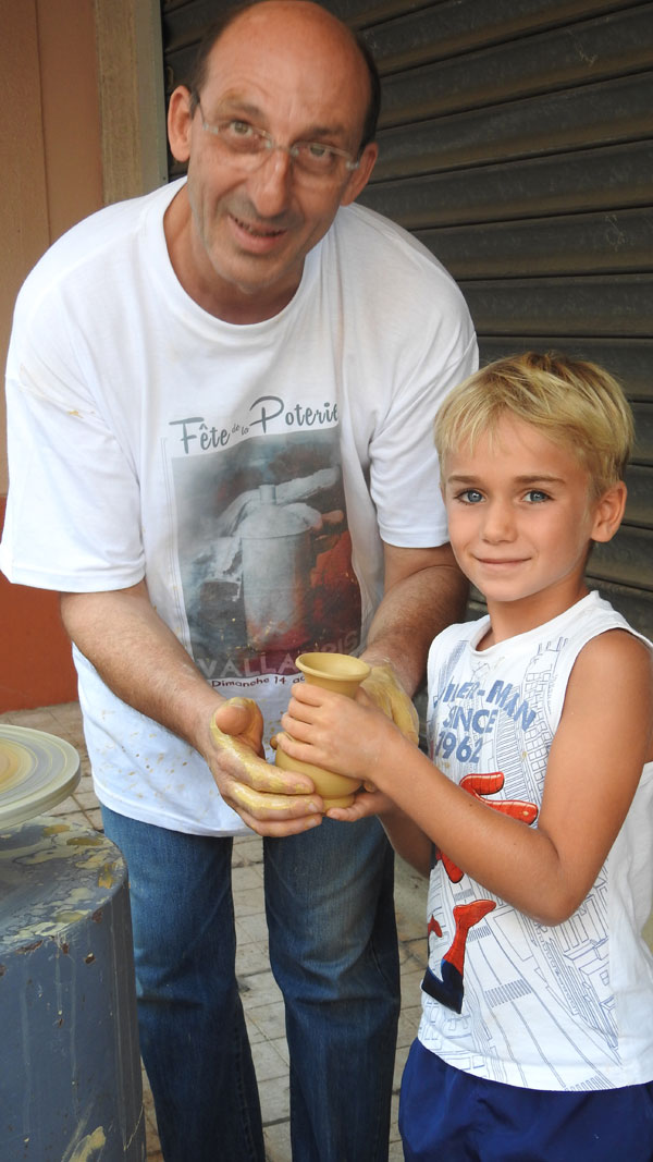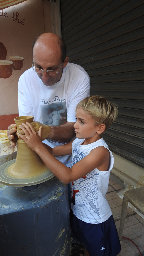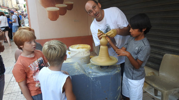 The day of the Fête de la Poterie was punctuated by numerous events including a solemn mass, a lively parade by flag wavers, street artists, acrobats, jugglers and orchestras, demonstrations of turning, stamping and decoration, a calligraphy workshop, a cartoonist who was sketching portraits. The smaller could participate in many games such as running boards topped with a pottery they should not drop to expect win the race.