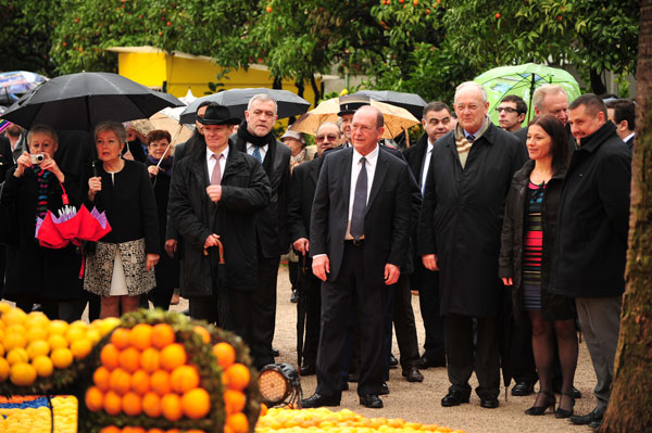Captain Nemo noted in the logbook of the Nautilus that the 81st Fete du Citron was inaugurated by MP-Mayor of Menton, Mr Jean-Claude Guibal accompanied by many personnalitues including Jacques Boisson, Secretary of State and Michel Roger, Ministre of State, representing SAS the Prince Albert Ier of Monaco, Jean Daniel Montet Jourdran, Vice-Prefect of Alpes Maritimes, Giuseppe La Rosa, Prefect of Vintimille, Serena Lippi, General Consul of Italie in Nice, Wolfgang Gerstner, Mayor of Baden Baden. The officials visited the Boviès garden, admired the exhibition of colorful motifs and were honored by a traditional musical aubade and dance.