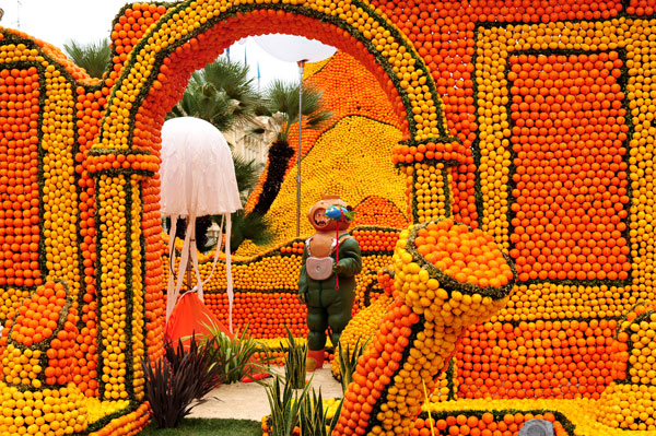 From February 16 at 14 h 30, day and night corsi (parades) will stage ten floats created on the theme of Jules Verne’s “20,000 Leagues Under The Sea” and multiple street entertainments. The Fete du Citron involves more than 300 professionals and requires 145 tons of citrus.