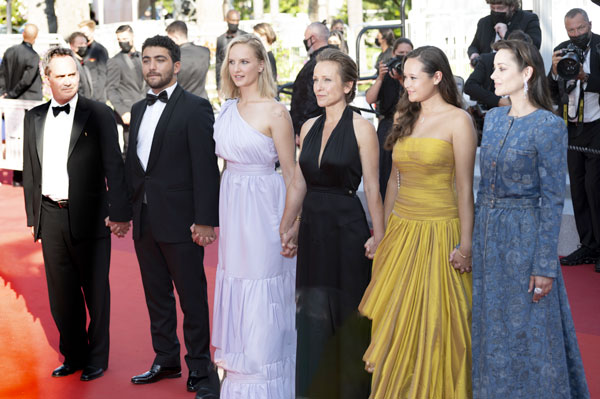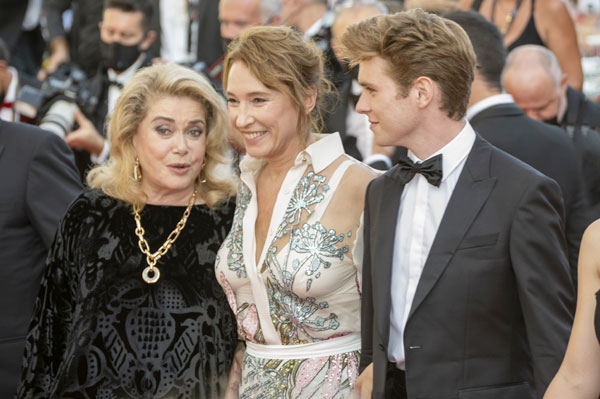 A legend of the cinema, Catherine Deneuve (77) makes her return onto the Red Carpet for Emmanuelle Bercot‘s De son vivant, a year and a half after a vascular accident on the set of this film. A regular at the Croisette, the iconic French actress with 140 films had presented the Palme d’Or to South Korea’s Bong Joon-ho for his film Parasite in 2019. Catherine Deneuve first walked the Red Carpet 57 years ago for Jacques Demy‘s The Umbrellas of Cherbourg, which won the Palme d’Or in 1964.