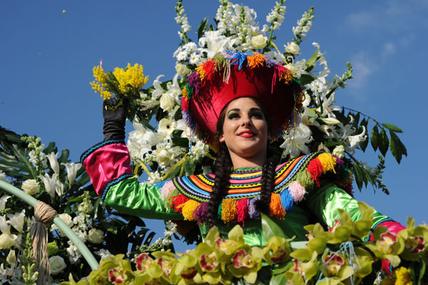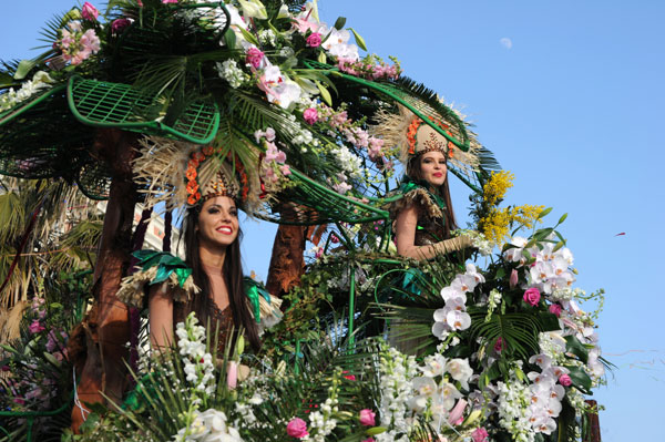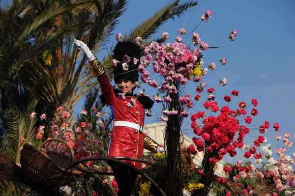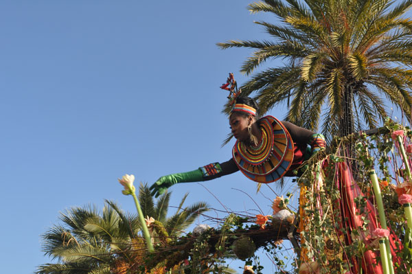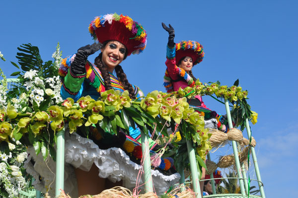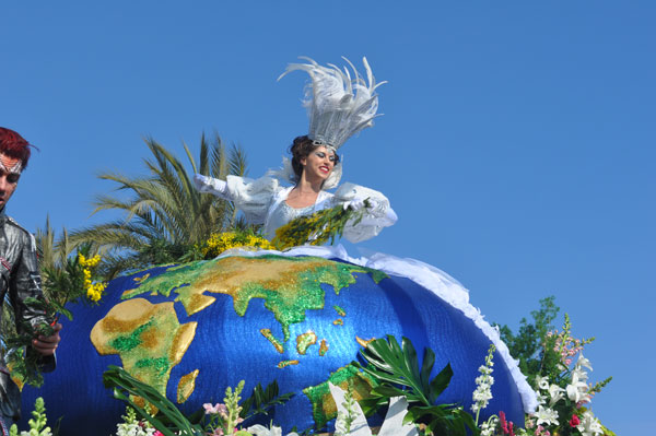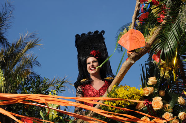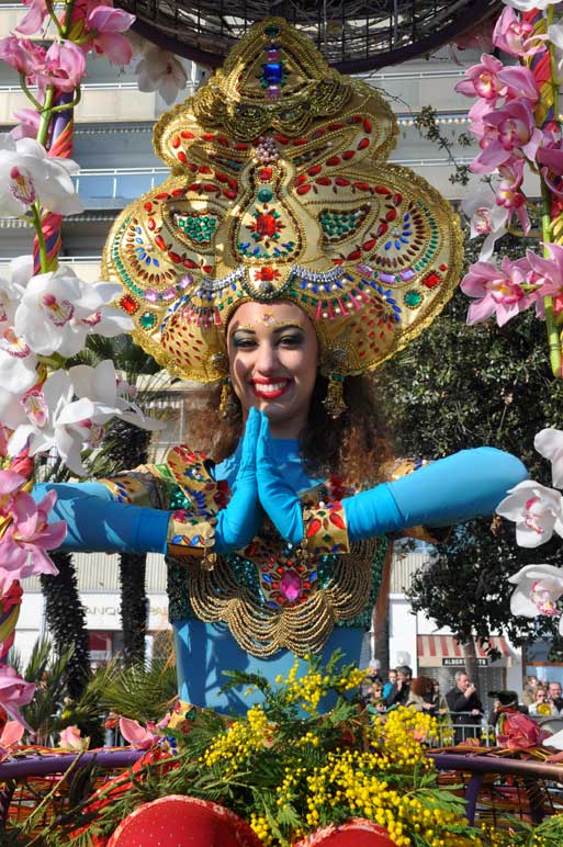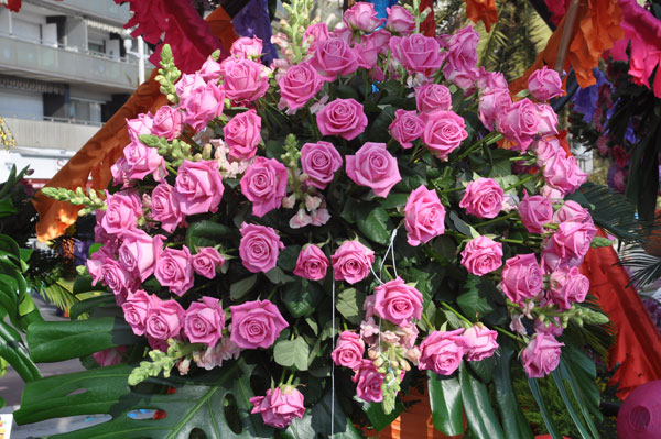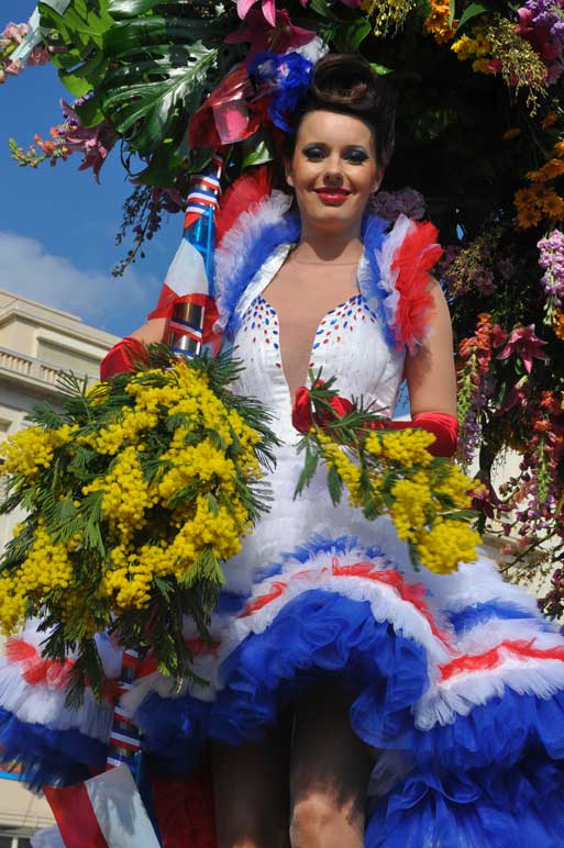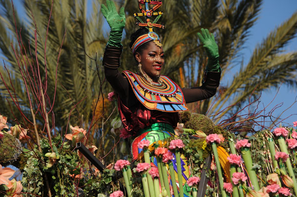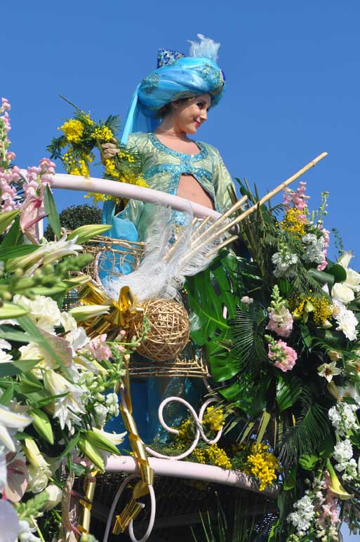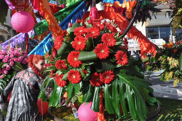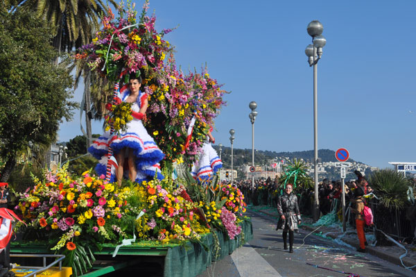 Today, this event promotes the quality and large variety of French Riviera flowers as some 90% of flowers used are produced locally. 20 flower-covered floats parade along the promenade des Anglais between the Théâtre de Verdure and the Hotel Negresco. The development and conception of the floats is a long and meticulous task which nonetheless has to be carried out within a very short lapse of time. On each float, costumed models throw 80 to 100.000 flowers to an enthusiastic crowd : gladioli, tokyos, mimosas, gerberas, daisies, roses, carnations… These “battles” are staged on the same theme as the Carnival floats. The costumes are designed in a workshop entirely dedicated to their creation.They are unique creations as for theatre performances. This event is one of its kind in the world and features among the most famous of the French Riviera. Nice exportes its know-how in the fields of elegance, beauty and the charm of these flower parades. (Via Carnaval de Nice).