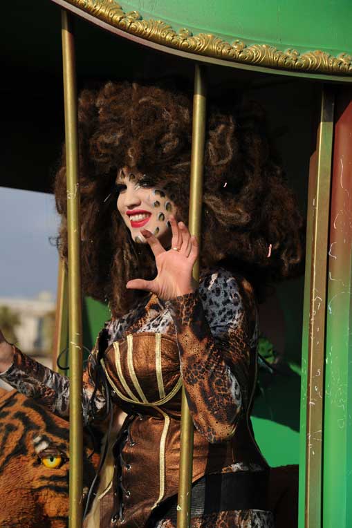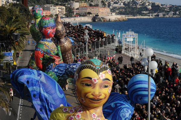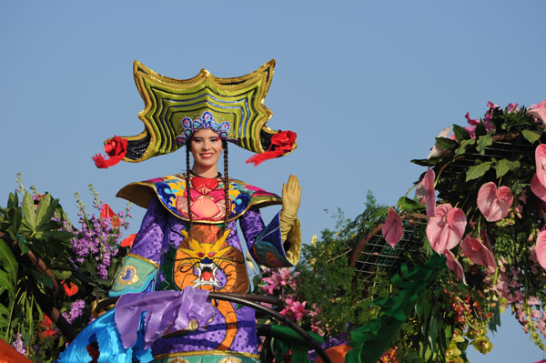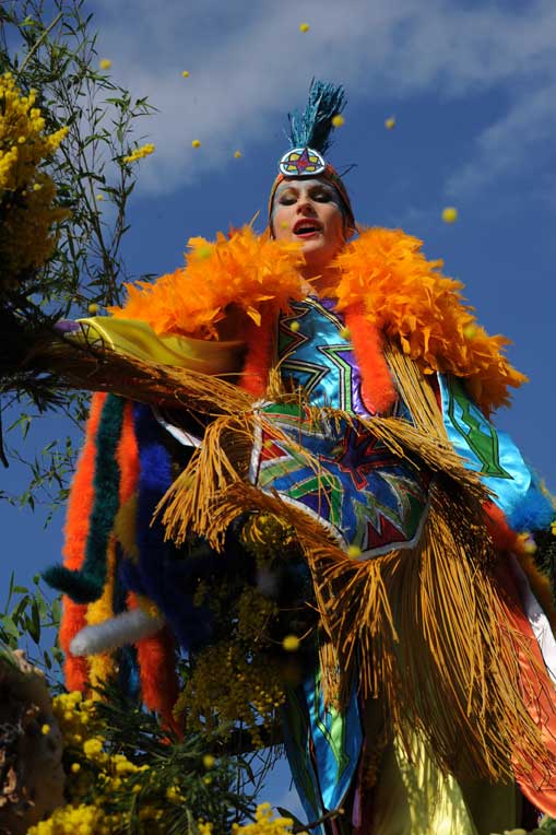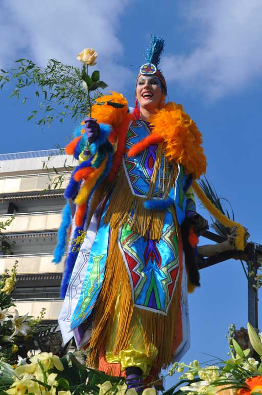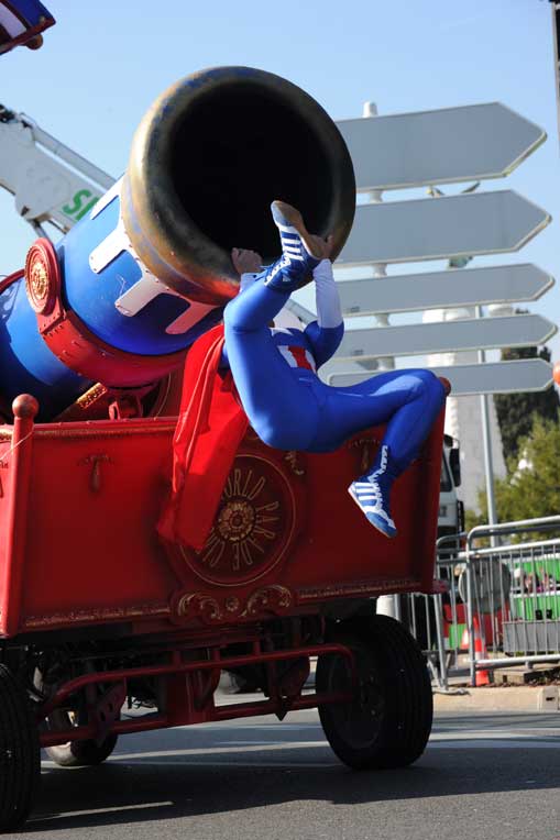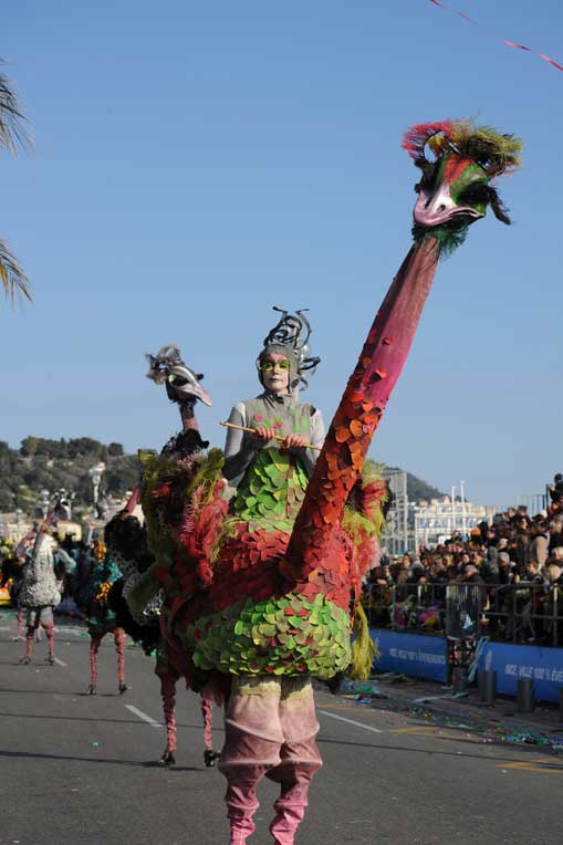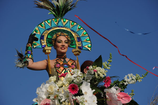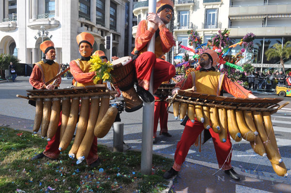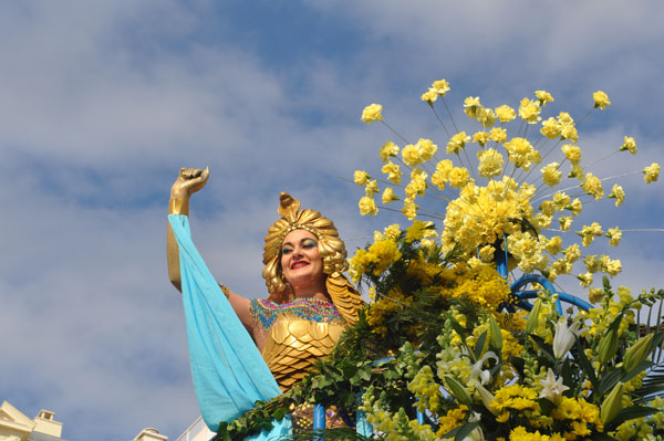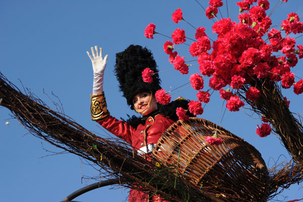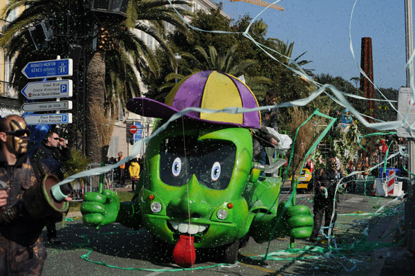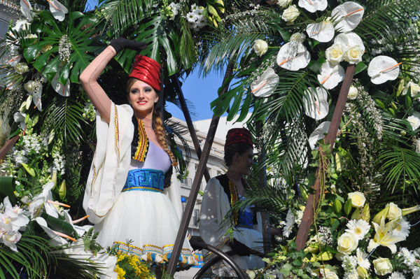 Today, this event promotes the quality and large variety of French Riviera flowers as some 90% of flowers used are produced locally. 20 flower-covered floats parade along the promenade des Anglais between the Théâtre de Verdure and the Hotel Negresco. The development and conception of the floats is a long and meticulous task which nonetheless has to be carried out within a very short lapse of time. On each float, costumed models throw 80 to 100.000 flowers to an enthusiastic crowd : gladioli, tokyos, mimosas, gerberas, daisies, roses, carnations… These “battles” are staged on the same theme as the Carnival floats. The costumes are designed in a workshop entirely dedicated to their creation.They are unique creations as for theatre performances. This event is one of its kind in the world and features among the most famous of the French Riviera. Nice exportes its know-how in the fields of elegance, beauty and the charm of these flower parades. (Via Carnaval de Nice).