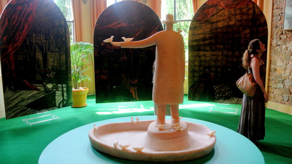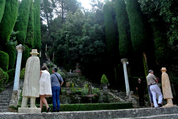 The mysterious gardens of this magical place, located Avenue Fiesole, allowed many visitors to enjoy a unique part of the Belgian artist’s work. By recreating in the gardens a real dialogue between the artist, the viewer and the monumental sculptures that are deployed, the exhibition invites to dream. To fly with the bronze works of The Man Looking at The Stars or The Takeoff (highlight of the exhibition), or to travel with the Start or The Suitcase.