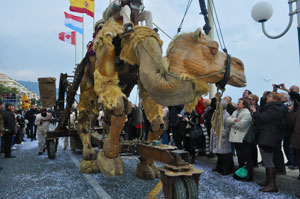 In ancient times, it was even a sacred fruit for Hebrew, used in certain ceremonies, such as the Feast of the Tabernacle or used by the Greeks in wedding festivities. As every year for 80 years in February, the city of Menton organized in its honor the Fête du Citron with parades of floats expressing themes made with lemons and oranges, embellished with street entertainment, bands, visual artists. This year, Menton celebrates 80 years of the Fête du Citron (Lemon Festival) and took the gamble of The Journey Around the World in 80 Days. The Boviès gardens offers a dive into the pages of the famous novel with tremendous reconstitutions of places, temples, monuments encountered by the adventurous traveller. The parades of floats and animations evoke many adventures and encounters of Jules Verne’s hero, Phileas Fogg, the countries he visited and the various means of transport he used. But.. but Phileas Fogg’s voyage included a mysterious stage, never evoked. This is fixed, as, from February 16 to March 6, Menton was the Secret Stage on the famous traveler’s journey. Here are images of the first Fête du Citron corso on Sunday 17. With suitcases full of lemon and orange, let’s embark towards adventure and dream!