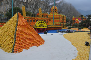 This year, the Menton Fête du Citron celebrates its 80th anniversary. For this milestone, the city, located on the borders of Italy, the Principality of Monaco and the County of Nice offered its thousands of visitors an invitation to travel and adventures with Victor Hugo’s The Journey Around the World in 80 Days which inspired the theme of the floats.