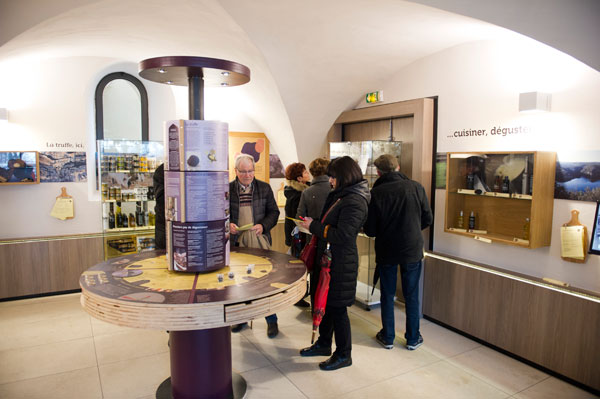 La Maison de la Truffe a pour vocation de mettre en avant l’identité et le patrimoine régionaux et de présenter la truffe dans toutes ses dimensions. Quatre espaces ludiques, aux ambiances complémentaires, accueillent les visiteurs: un espace « goût de la truffe », où l’on découvre la truffe par les 5 sens; l’espace truffo-touristique, espace d’information sur les activités autour de la truffe; l’Aventure de la truffe, une partie muséographique de présentation de la truffe et la trufficulture; enfin, la visite peut se conclure à la boutique de vente de produits autour de la Truffe Noire.