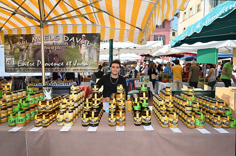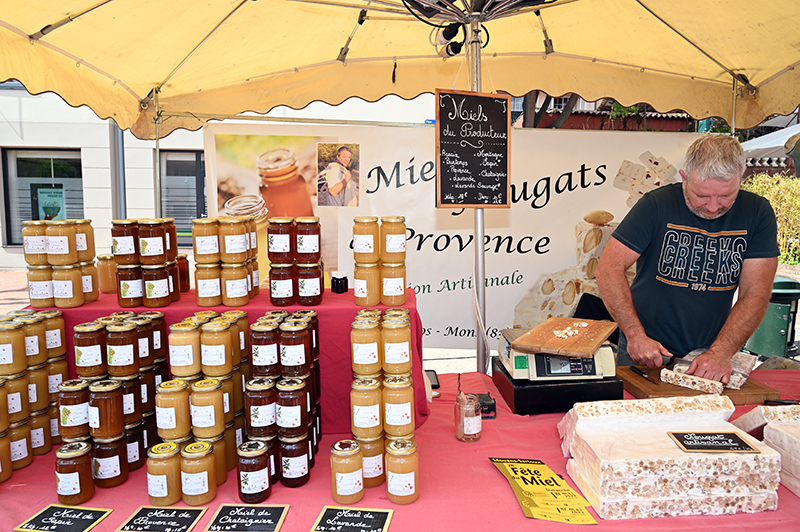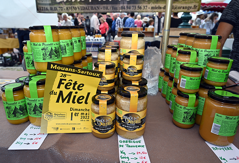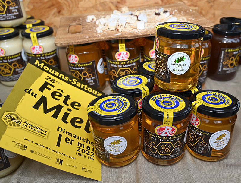 La production en miel de Provence s’estime autour 2 000 tonnes par an, soit 8 % de la production nationale. La principale production de miel de Provence est le miel de lavande qui représente en année normale plus de la moitié de la production totale. Ambassadeurs passionnés, les apiculteurs réalisent 60 % de la distribution de miel en vente directe. À Mouans-Sartoux comme chaque année, cette fête miellée a attiré de nombreux gastronomes qui toute la journée se sont pressés autour des stands, des ruches exposées et des animations. Tous ont témoigné par leur présence l’attachement et l’affection pour ces infatigables travailleuses qui bourdonnent à nos côtés dans la nature depuis la création du monde.