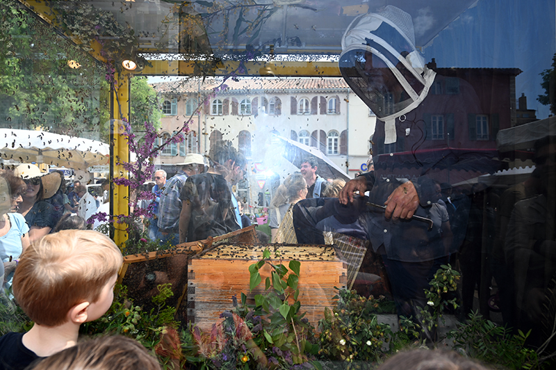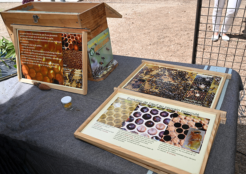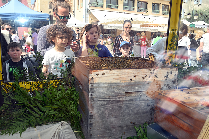 Avant d’apprécier l’étendue aromatique des miels de Provence, les visiteurs ont pu, auprès d’une ruche géante, découvrir comment ces butineuses travaillent pour nous offrir leurs gelée royale, pollen, cire et miels. Car la Fête du Miel de Mouans-Sartoux est aussi l’occasion pour les apiculteurs professionnels de faire comprendre au public la méthode d’élaboration du produit.