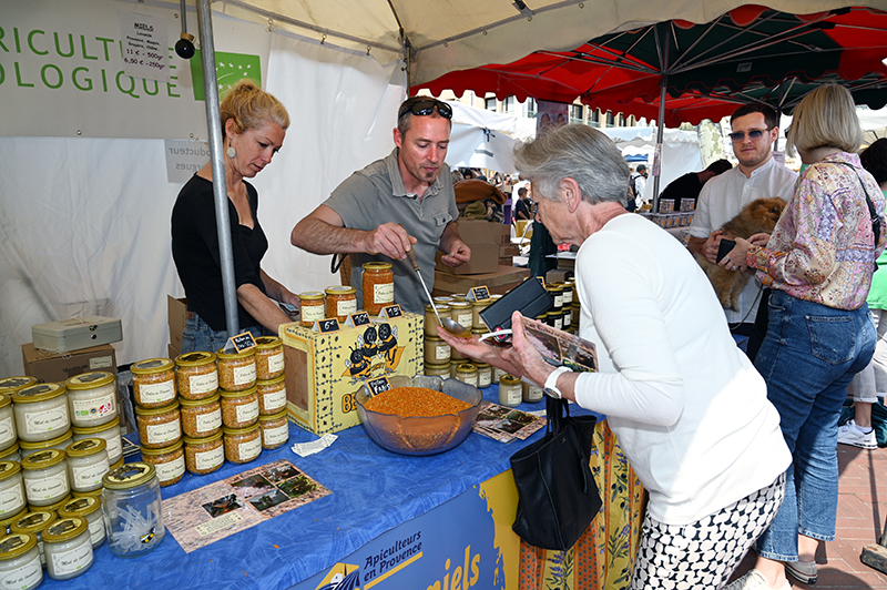 Cette année, la Fête du Miel de Mouans-Sartoux a régalé 8 000 amateurs de saveurs sucrées dans le centre du village. Les visiteurs ont pu découvrir les miels d’exception d’une quarantaine de producteurs de Provence proposant les mille et une saveurs des miels de la région: lavande, pin et fleurs de la garrigue, aubépine ou tilleul des hauts plateaux, arbousier du maquis sauvage. Autant de trésors aux vertus gustatives, nutritives et thérapeutiques, pour le bien-être du corps et de l’âme.