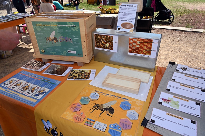 Mais également de sensibiliser le public à un fait certain: sans les abeilles, et leur pollinisation, plus rien n’existerait et l’humanité serait en grave danger… Les pesticides, la négligence humaine et l’invasion progressive des frelons asiatiques – ces redoutables prédateurs – menacent les ruches et font diminuer leurs colonies. Des efforts sont encore à faire dans le sens du développement durable pour aider nos si précieuses amies ailées à alimenter la chaîne de la vie.
