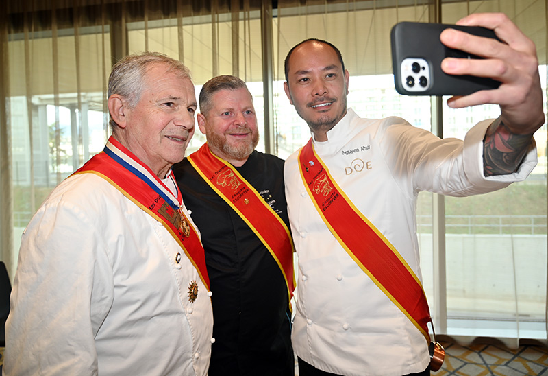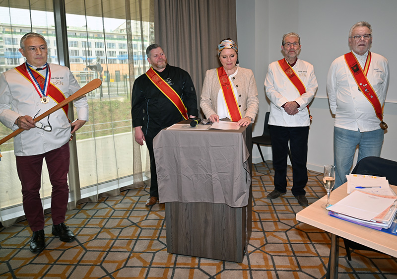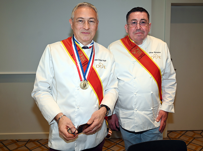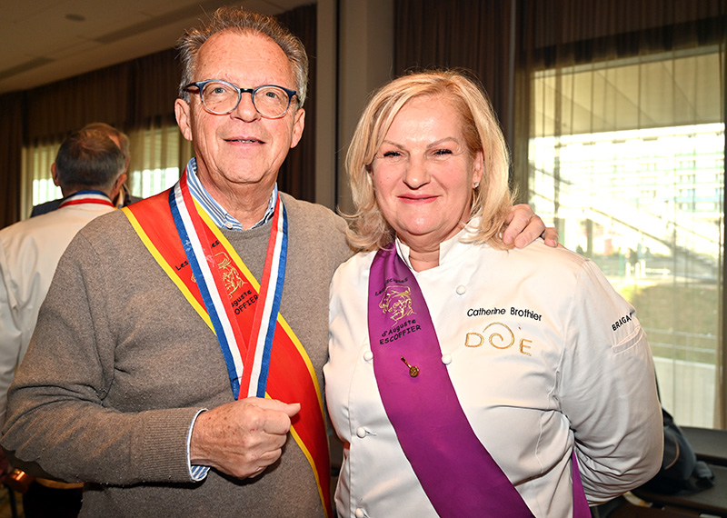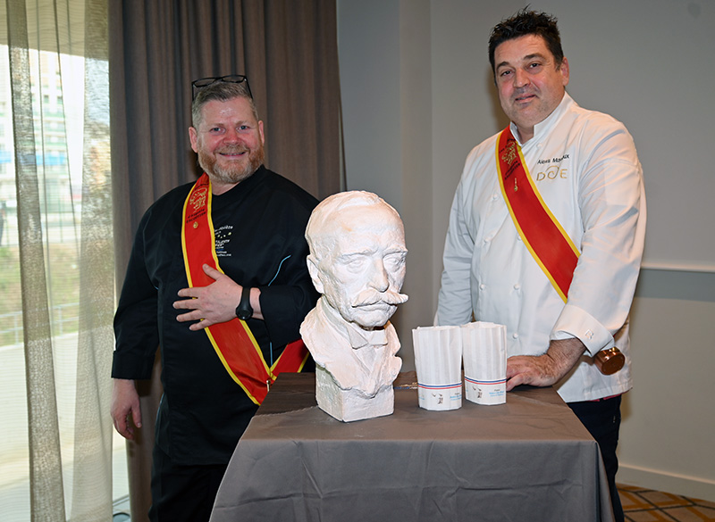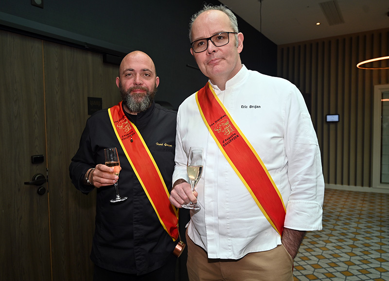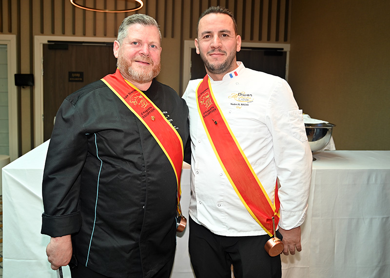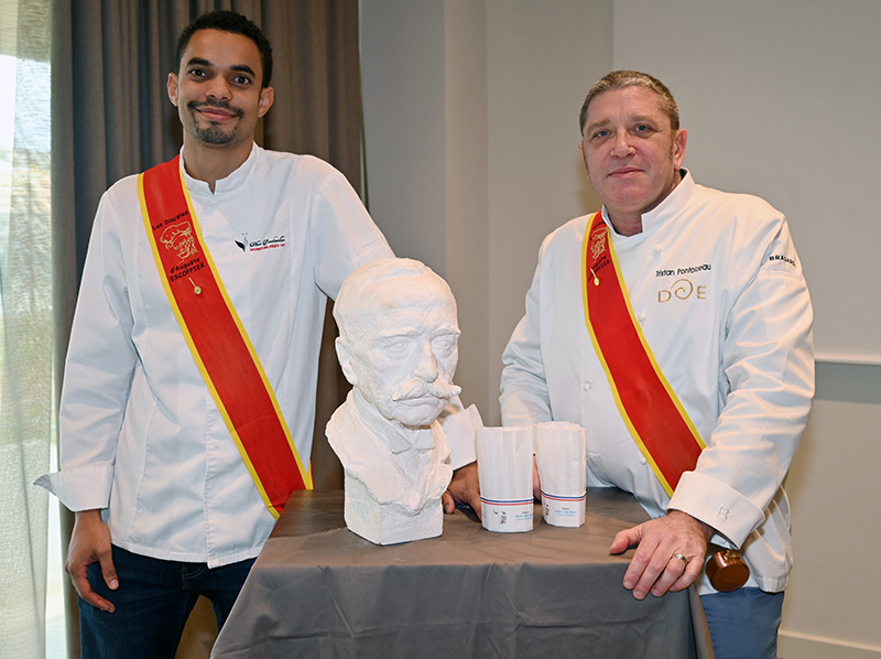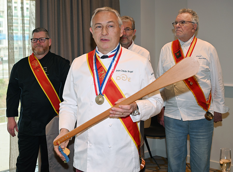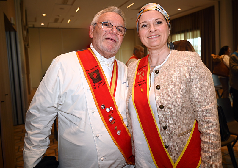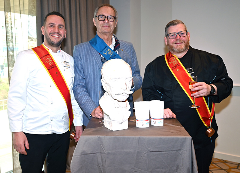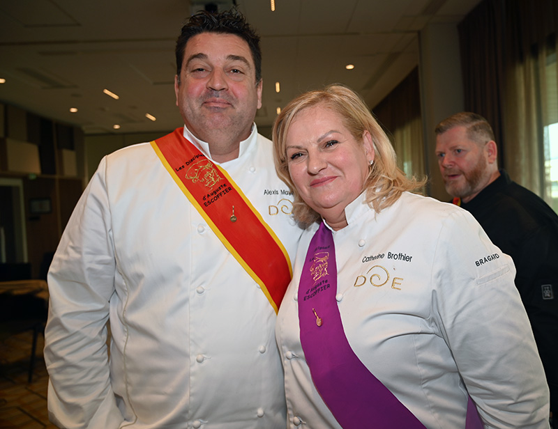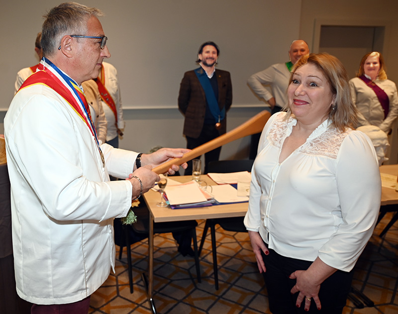 Impressionnés par le cérémonial, les deux impétrants se sont succédé sous la cuillère en bois du Président Jean-Claude Brugel, Chef MOF du Café de Paris à Monaco, qui leur a transmis « l’esprit Escoffier » par trois vigoureuses et joyeuses claques de cuiller sur les épaules. Ont été ainsi adoubés: Liliadys Kerloch propriétaire du resort Perla Riviera à Villeneuve Loubet et Rémy Fourmeaux, chef exécutif du Crowne Plaza Nice Grand Arénas et de l’hôtel Holyday Inn Express Nice. Ce maestro des fourneaux élabore une cuisine bistronomique qui met en scène les meilleurs producteurs de la région azuréenne et leurs richesses gastronomiques cuisinées minute.