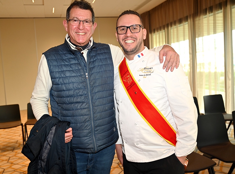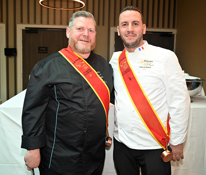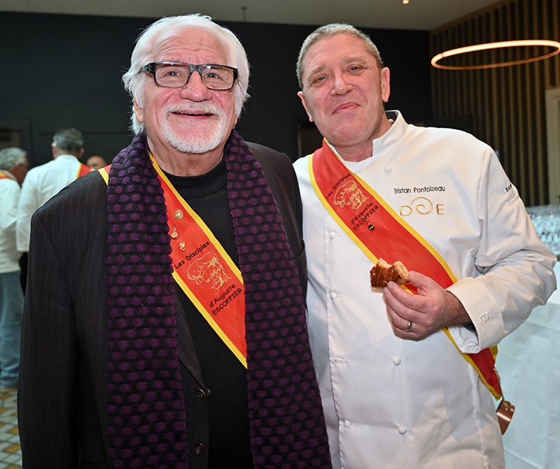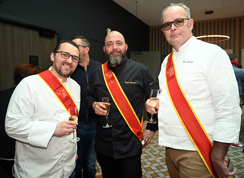 Parmi les nombreux Disciples Escoffier venus assister aux intronisations, nous pouvions apercevoir les chefs Xavier Laquièze (vice-président des Disciples Escoffier), Laeticia Merlot (vice-présidente des Disciples Escoffier), Bernard Louis Jaunet (Secrétaire Général Émérite), Jean Fajau, Mario D’Orio (ancien chef du 3.14 à Cannes), Christian Heuline, Catherine Brothier (ZK chocolatier), David Graziani (chef à domicile), Daniel Haouidech, Georges Vikiovski, Nader Albacha (restaurant Diwan Al Bacha), Nguen Nhut (Le Grain de Sel à Cannes).