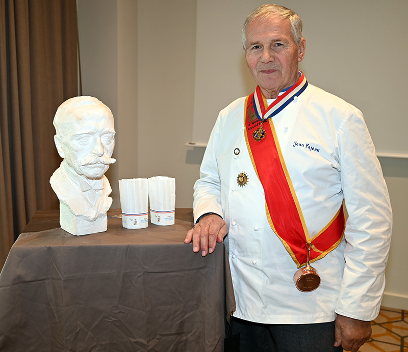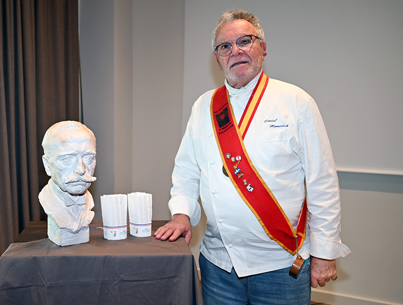 Les mots du président : un parcours valorisant qui forgent un homme et de surcroît un vrai cuisinier. Une carrière bien remplie avec la formation des hommes, le partage, la passation des connaissances et des savoirs, le respect du produit et de ceux qui les produisent, tu reste sensible et prône à l’écologie, nous te confions le relais d’être un de nos ambassadeurs pour notre association comme à son époque Auguste Escoffier.