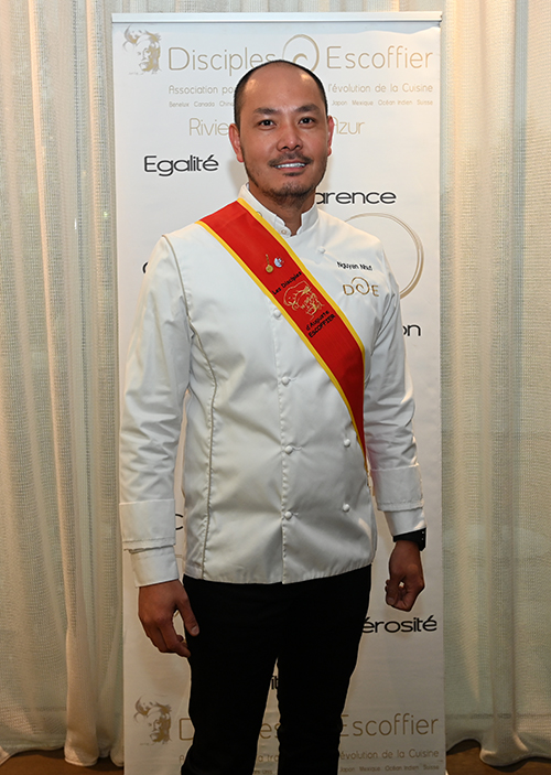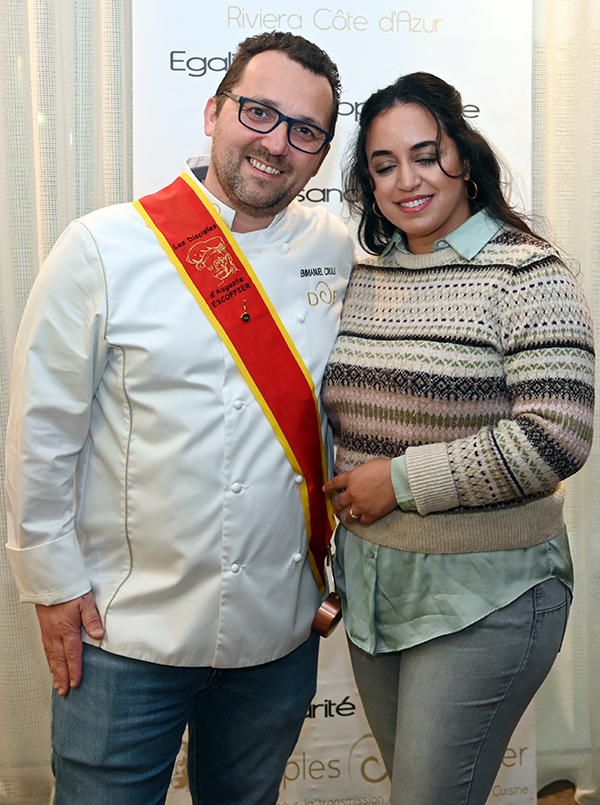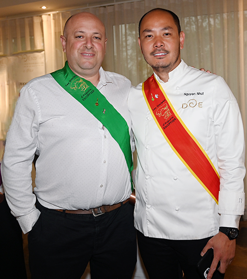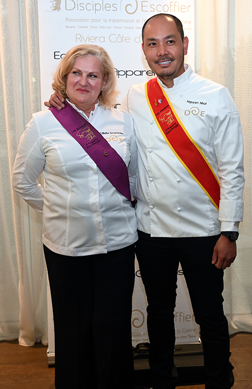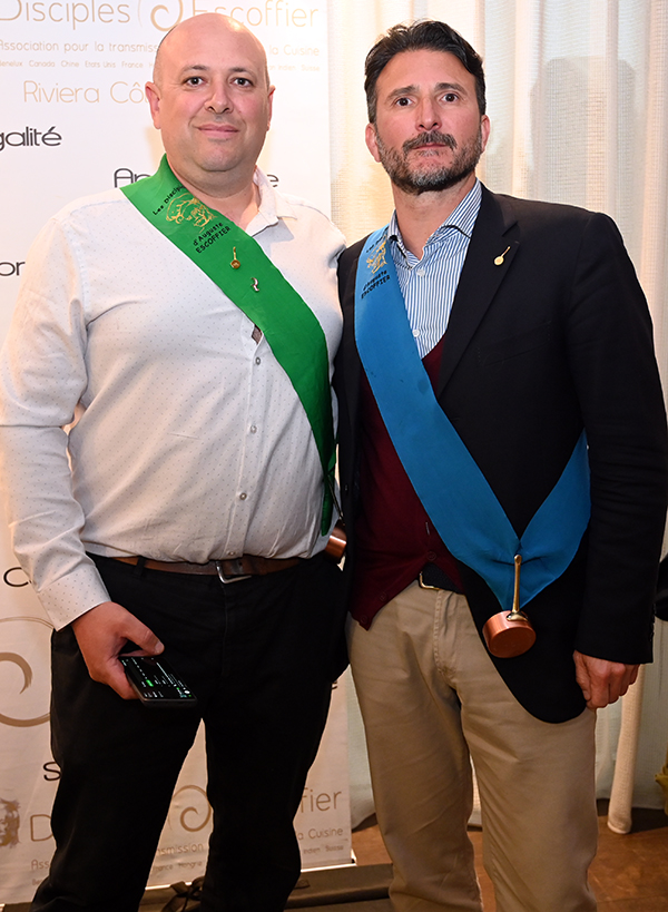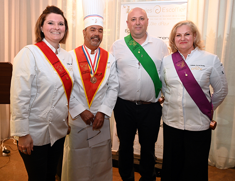 Parmi les nombreux Disciples Escoffier venus assister aux intronisations, nous pouvions apercevoir les chefs Michel Duhamel (ancien président de la délégation Riviera Côte d’Azur), Laeticia Merlot (vice-présidente des Disciples Escoffier), Nhut Nguyen (Le Grain de Sel à Cannes), Fabrice Simon (Chef à la Maison Duplanteur), Nader Albacha (restaurant Diwan), Emmanuel Crulli (chef exécutif –Thales Alenia Space, Cannes-Mandelieu), Catherine Brothier (ZK chocolatier), Michel Guillot (organisateur des Chefs au Sommet d’Auron), Daniel Haouidech, Georges Vikiovski, (chefs consultants), Frédéric Michel (past trésorier – fournisseur des vins trois couleur Domaine du Blavet), Jacqueline Kossow, Gérard Franzin (trésorier de l’association), Christine Giraudeau (Champagne Fines Bulles Comte de Cheurlin)…