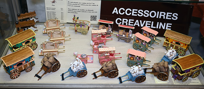 Les pièces uniques Créaveline ont rejoint cette année la Foire de Mouans-Sartoux. Cette palette colorées de santons et d’accessoires à croquer est entièrement fabriquées à la main. Sa créatrice Évelyne Amar, a le sens du détail comme les barbes à papa, les bâtons de guimauves et les pommes d’amour d’un rouge éclatant, les gaufres et crêpes (plus vrais que nature) de chez Suzette ou les boules colorées et les cornets appétissants du marchand de glace. Pour parfaire l’authenticité ces délices à croquer, la créatrice explique: « J’utilise de la pâte polymère, du cuir, du bois, de l’argile, du tissu… et beaucoup d’amour et de patience. J’ai toujours eu une très belle crèche, mais comme je ne trouvais jamais mon bonheur, ce que je voulais, je l’ai créé. »