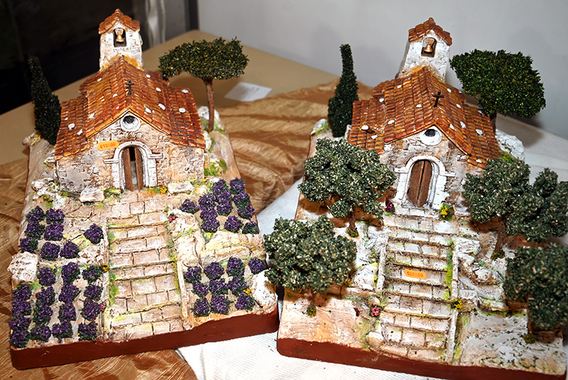 Dans son atelier situé dans le beau village médiéval de Tourrettes-sur-Loup, Martine Gaussen peint chaque santon de matière unique à la caséine puis le vernit. La Nativité, mais aussi les personnages traditionnels de l’imagerie populaire: nonnes, marchandes de violettes, violonistes, boulangères, jardiniers, gardes champêtres, sans oublier les animaux de la campagne et les maisons du village. La famille compte une cinquantaine de sujets au total. Les clients peuvent compléter leur crèche année après année, en guettant les nouveaux arrivés, ou en commandant sur le site de vente en ligne www.la-vieendouce.com. Au côtés des santons, Marline s’est créé un monde imaginaire, « Une Vie en Douce », qu’elle aime partager avec ses visiteurs.