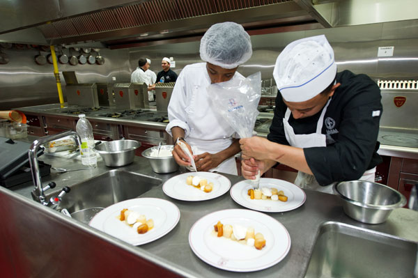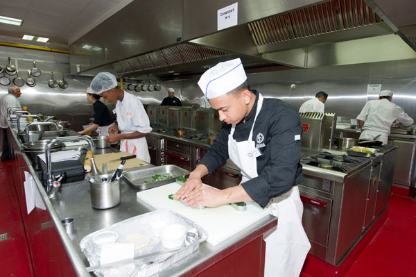 La quatrième édition du Challenge Culinaire Jeunes Talents s’est déroulée dans les cuisines rutilantes de l’école hôtelière de Cannes sous l’œil avisé d’un jury technique composé de chefs Toques Blanches. C’est ainsi que Jean Louis Rizzo, ancien chef du Carlton Intercontinental à Cannes, Mario D’Orio, ancien chef du 3,14 à Cannes, Serge Payant, Alain Hascoet, chef adjoint au Carlton Intercontinental à Cannes, Ermano Geria, chef consultant, Jean François Philippe, chef consultant, Antoine Regnault, chef du Vegaluna à Cannes et Pascale Labarade, chef du restaurant Rossini à Nice, coordinateur et minuteur de l’épreuve, eurent la difficile tache de noter les sept chefs en herbe lors de l’élaboration de leurs plats.