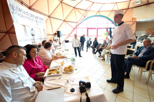 A la table de dégustation, un jury de chefs prestigieux composé de Laurent Poulet, chef au Manoir de l’Étang à Mougins, Anne Salé, journaliste, Stéphane Saluzzo, chef Pâtissier, Eric Finon, MOF, chef du Park Lenôtre à Mougins, Jean-Pierre Cassagne, ancien chef de la Closerie des Lilas à Paris, Olivier Quinaut, expert culinaire chez Neslé, Pierre Dominique Cecillon, chef au Paris Country Club à Paris et Laurent Balicco, administrateur de GIE Balicco.