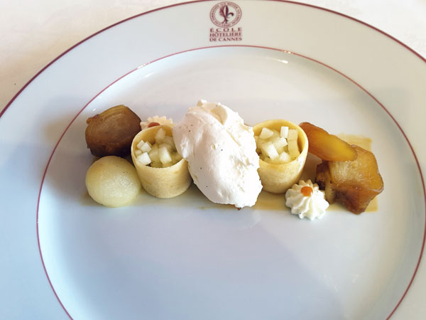 Après une première sélection sur dossier, le comité technique a sélectionné sept candidats pour la phase finale du concours. L’épreuve, sur la thématique du lapin en plat principal et de la pomme pour le dessert, a duré 3 heures 30. A l’issue de l’épreuve, les jeunes talents assistés d’un commis en formation CAP cuisine de l’École Hôtelière de Cannes ont présenté quatre assiettes et un dessert au jury dégustation.