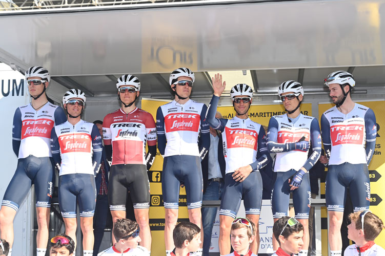 Le départ fixé au Cannet marquait le début de cette longue et première étape. Sur la ligne de départ, 18 équipes: Groupama-FDJ, Ag2R La Mondiale, Cofidis, Trek-Segafredo, EF Pro Cycling, NTT Pro Cycling, Team Sunweb, Total Direct Energie, Nippo Delko One Provence, Vital Concept-B & B Hôtels, Rywal-Readinez, Rally Cycling, Bing Goal-Wallonie Bruxelles, Natura-Ever-Roubaix LM, Saint-Michel-Auber 93. Les 126 concurrents sont arrivés tôt le matin à bord de gigantesques bus siglés au nom des sponsors des équipes, suivis des voitures des directeurs sportifs aux toits chargés des vélos de leurs poulains sur le parking du centre culturel La Palestre.
