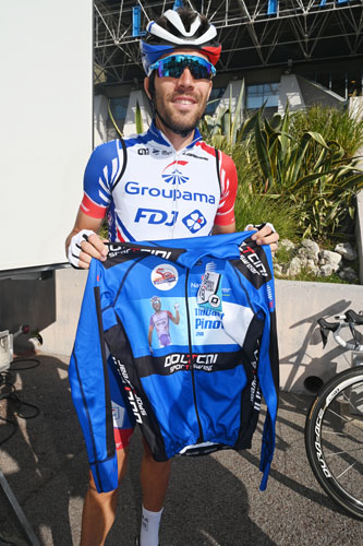 Anthony Pérez endosse le maillot jaune de la première étape ©YesICannes.com