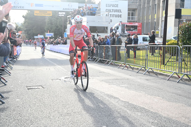 Au kilomètre 184, au pied de la dernière bosse de la Capitale Internationale des Parfums, deux homme seulement occupaient tête de la course avec 1 minute 20 secondes d’avance: Anthony Turgis et Anthony Pérez. La double montée finale vers Grasse (2km à 7% puis 3km à 6%), grimpée à un train d’enfer, se chargea de désigner le vainqueur. Anthony Pérez franchit la ligne d’arrivée avec 1 seconde d’avance sur son rival Anthony Turgis. Mickaël Storer pointe à 4 secondes, le groupe des favoris à 6 secondes.