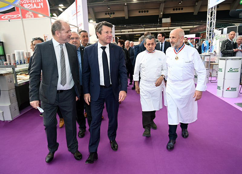 La délégation officielle emmenée par Christian Estrosi a arpenté pendant toute la matinée les allées du salon, à la rencontre des exposants venus faire la démonstration de leurs produits et savoir-faire comme sur l’imposant stand de Laurent Balicco et ses magnifiques fruits et légumes ou celui de Metro qui accueillait pour l’occasion de nombreuses démonstrations culinaire des Maîtres Restaurateurs.