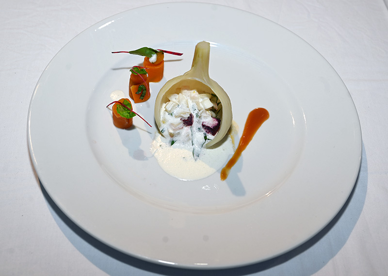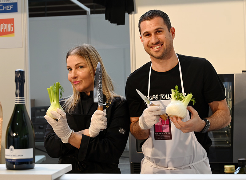 Agecotel s’est clôturé par l’accueil de ses confrères et amis des Étoiles de Mougins. Placé sous la houlette du chef Laurent Poulet le challenge des Étoiles de Mougins consistait à réaliser, au choix un plat sucré ou salé avec un produit proposé. Six équipes formées chacune d’un partenaire des Étoiles de Mougins et d’un chef avaient deux heures pour réaliser ce battle en duo.