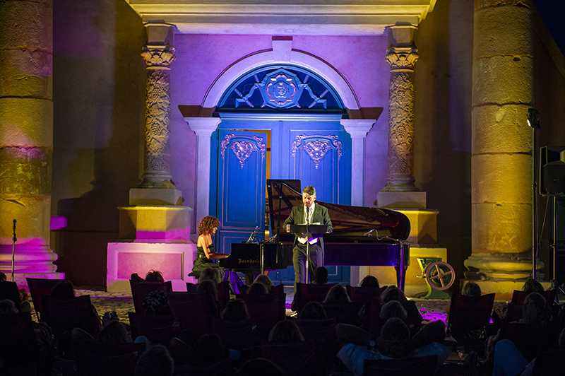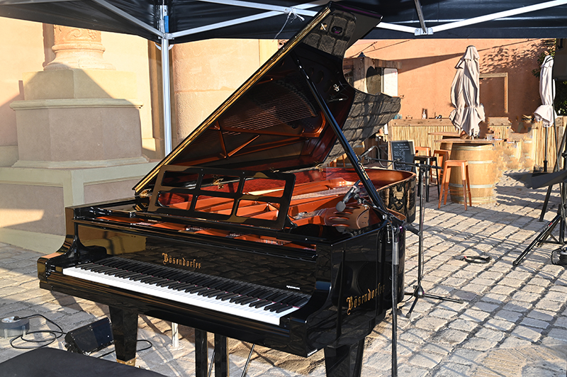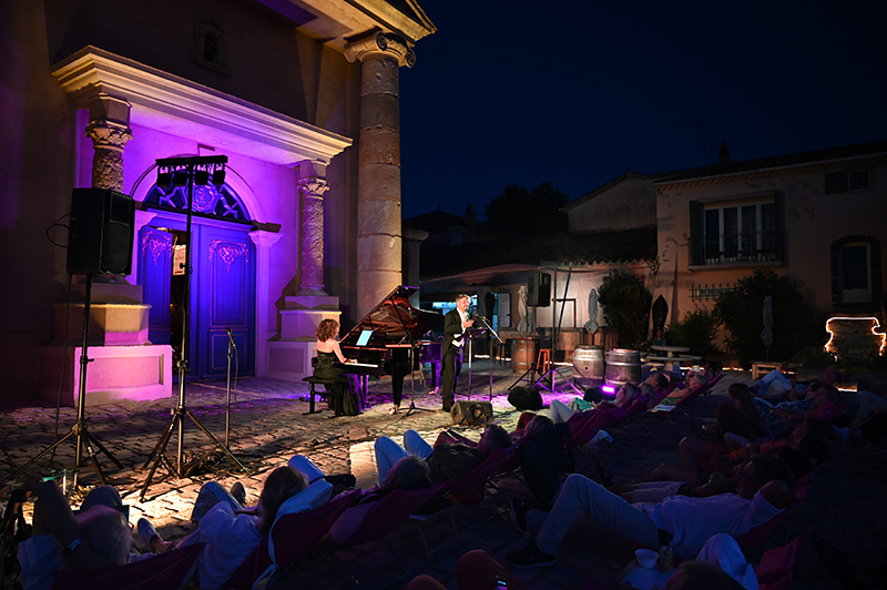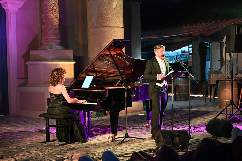 En attendant les vendanges imminentes, les appétissantes et belles grappes de raisins du Domaine Bertaud Belieu ont vibré le 26 août 2021 au piano et aux chansons d’opéra et d’opérettes du ténor Alexandre Guerrero. Pour cette superbe performance musicale, légèrement perturbée par des rafales de vent tournoyants, le prestigieux ténor était accompagné de la pianiste et virtuose Stéphanie Fontanarosa et de son piano à queue Bösendorfer.