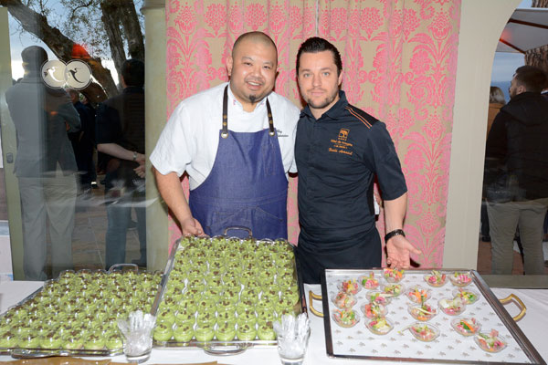 Pour mettre les chefs, les partenaires et les journalistes en appétit de Festival, le Maire Richard Galy avait invité au Mas Candille une « brochette » de prestigieux chefs de la région pour annoncer le programme gourmand des Etoiles de Mougins 2018. David et Noëlle Faure (Sensôriel à Nice), Basile Arnaud (Le Jardin à l’Hôtel de Mougins), Akara Chay (La Vague de Saint Paul), Gabriel Degenne (Le Ciste au Château de la Bégude), Redouane Mansouri (Le Blue Pearl à Villeneuve Loubet), Bessem (Le Bessem à Mandelieu), le Chef Pâtissier Stéphane Mangin (La Bastide Saint Antoine – Jacques Chibois), Bruno Laffargue (Micmac Macaron à Antibes) et bien sûr le talentueux chef Xavier Burelle et son second Maxime Fontvieille, ont fait démonstration de leur Art et talents en régalant l’assistance de leurs délicieuses spécialités et douceurs.