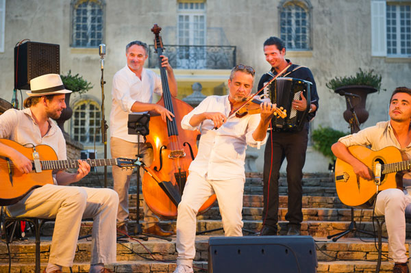 Valérie Rousselle, propriétaire du prestigieux Château Roubine, accueille depuis longtemps l’Art au milieu des vignes avec le Festival Voix en Vignes et des expositions d’artistes. Le vendredi 17 août 2019, les vignes du Château ont frissonné aux rythmes entrainants du Jazz Manouche du groupe Basilic Swing. Ce concert était la trentième étape des Musicales dans les Vignes, un festival organisé par Marie-Jeanne Chauvin, qui conjugue chaque été amour de la bonne musique et charmes épicuriens des grands crus des prestigieux domaines vinicoles en Provence.