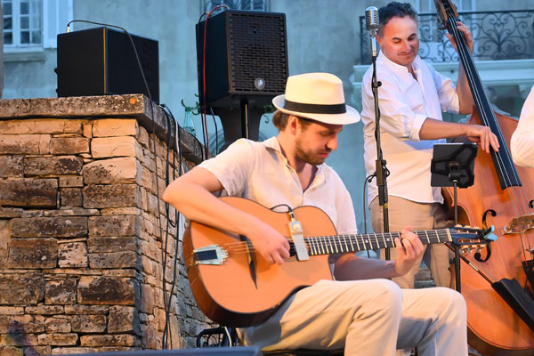 A la veille des vendanges, le groupe Manouche Basilic Swing a entrainé plus de 600 spectateurs dans un voyage à travers la magie musicale tzigane et Klezmer. Basilic Swing a enchanté les d’amoureux de Jazz et d’œnologie avec de grands standards inspirés des morceaux du légendaire Django Reinhardt et du Hot Club de France, de la musique Tzigane et la musique traditionnelle Yiddish, le Klezmer, ainsi que les musiques traditionnelles d’Europe de l’est et du jazz américain. Les musiciens marseillais partagent leur passion de cette musique généreuse et entrainante dans les clubs de jazz et les festivals de musique, avec une énergie débordante et un grand humour dans le jeu de présentation des morceaux.