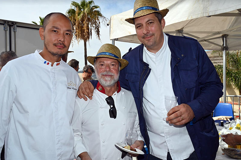 Dans une ambiance chaleureuse et conviviale, sur le ton des copains d’abord, la Pétanque des Toqués s’est disputée par équipe de trois personnes avec un professionnel de la gastronomie par équipe. Placé sous le règlement du Bol d’Or des Toqués, chaque joueur, revêtu d’une veste de cuisine au nom de son restaurant et armé de deux boules de pétanque devait viser le bouchin pour qualifier son équipe au deuxième tour. Cette année, la Pétanque des Toqués s’est ouverte au grand public par l’organisation d’un concours de socca.