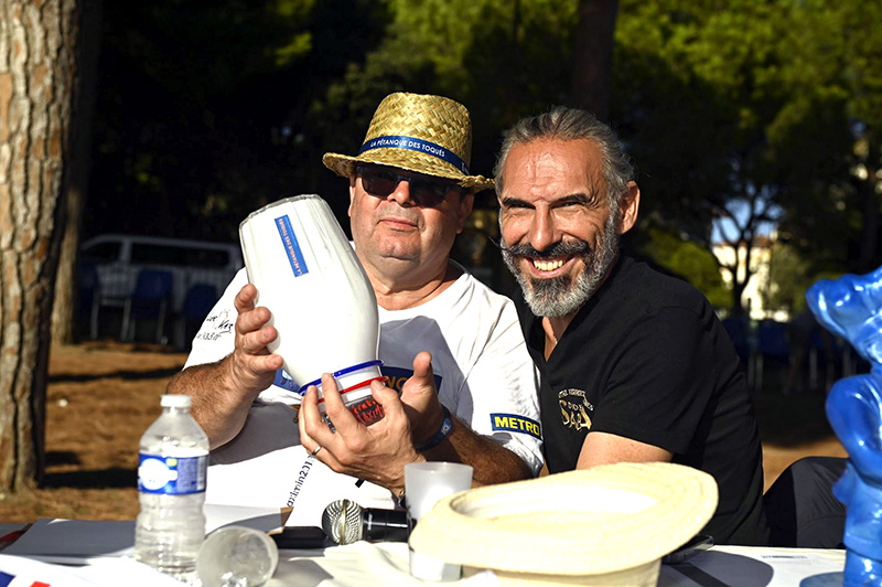À la suite du concours de la Pétanque des Toqués – 6ème édition – les gagnants ont reçu le trophée de l’artiste Sabrina Elarbi allias Le Doigt. De leur côté, les outsiders ont reçu de nombreux cadeaux ainsi que des œuvres d’art réalisés par des artistes azuréens. Le Maitre-verrier antibois Didier Saba a réalisé une Toque collector mis aux enchères au profit de l’association Special Olympics Monaco et signé à l’issue du concours par Frédéric Ramos, Christian Cottard, Christian Morrisset, Laurent Poulet, Jean-Paul Veziano, Mamo…
