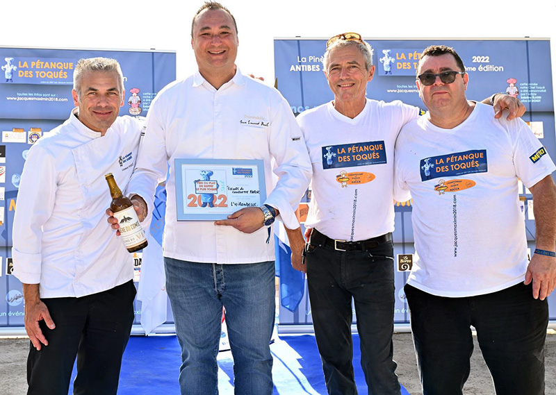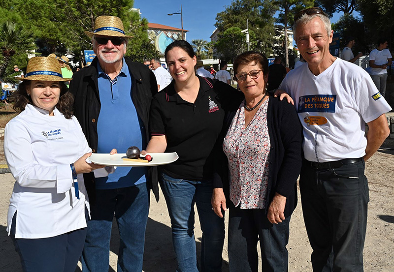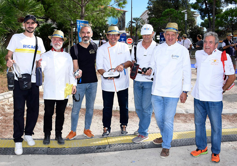 La Pétanque des Toqués, initiée en 2007 par Jacques Maximin, l’ancien chef du Chantecler à Nice, puis relancée par Frédéric Ramos, Chef de l’Azzurra Kitchen à Monaco, s’est déroulée le 3 octobre 2022 à l’ombre des pins sur le boulodrome de la célébrissime Pinède Gould de Juan-les-Pins. Cette année, les participants ont boulés pour Special Olympics Monaco, une association dédiée aux Enfants handicapés mentaux. De son côté, l’artiste Sabrina Elarbi, allias Le Doigt, a mis son art au service de la gastronomie pour personnaliser le chef des toqués.