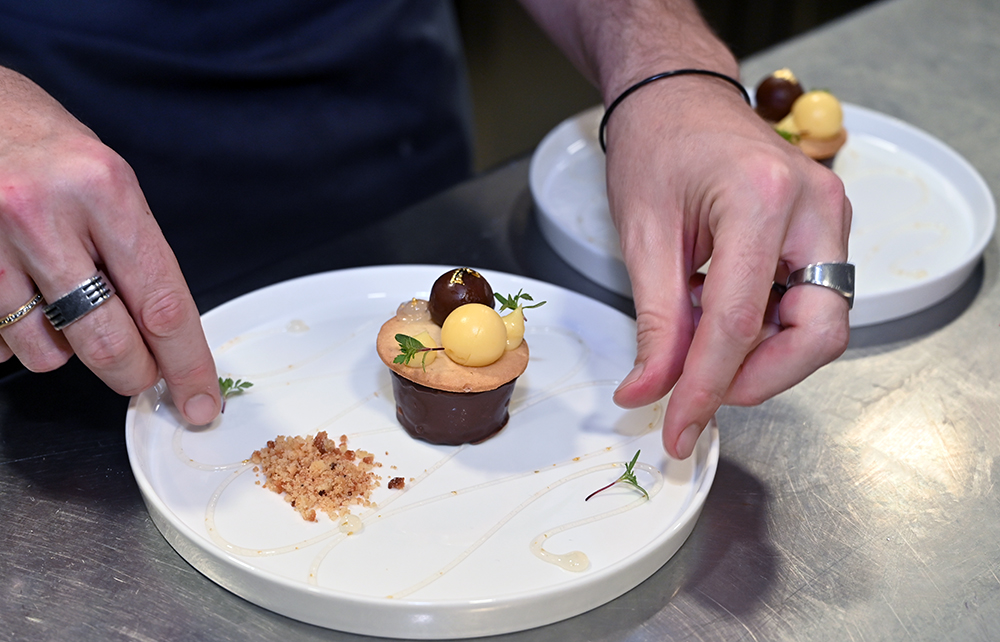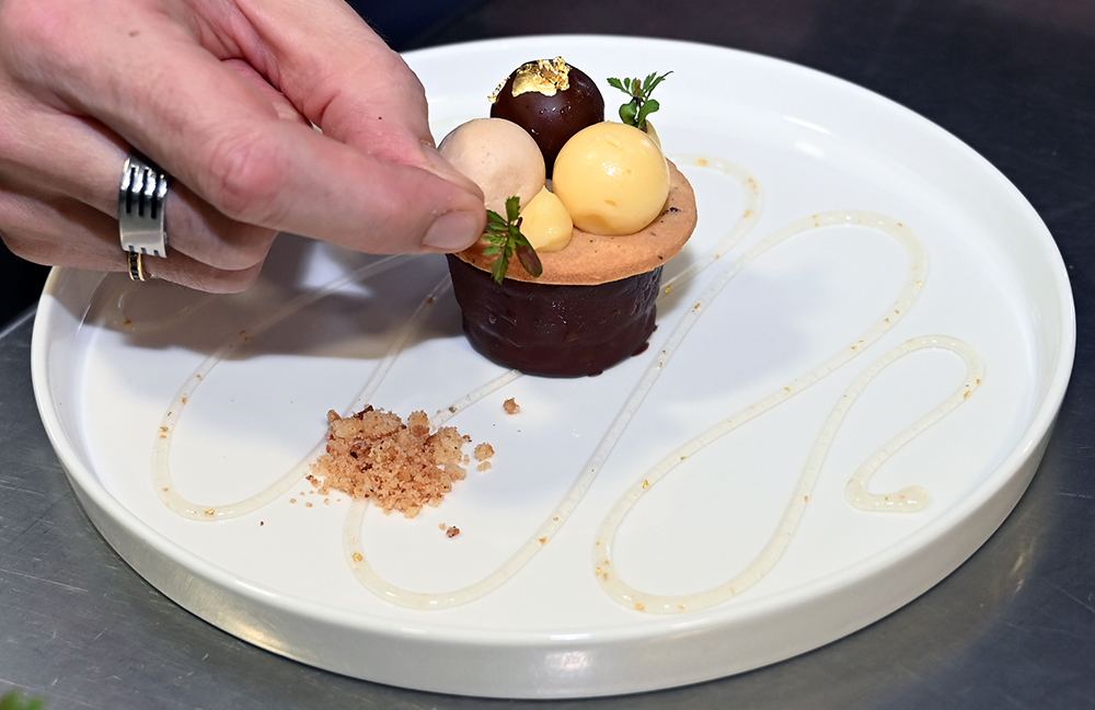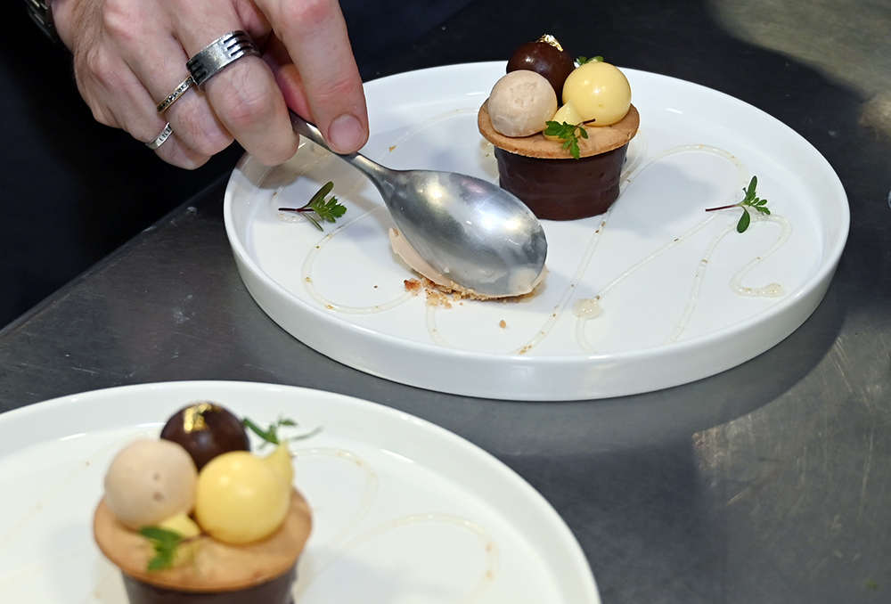 Cette symphonie gourmande jouée avec le cœur donna dès le départ le tempo de cette valse sensorielle: visuel, texture, goût, tout y est parfaitement accordé. Un travail d’orfèvre ciselé sur mesure.