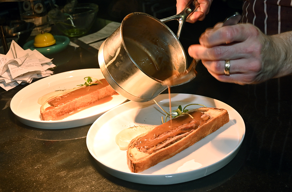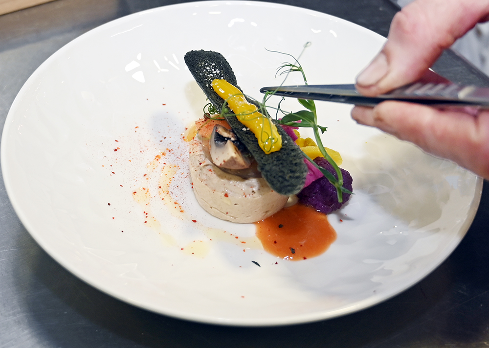 Confit de Canard en feuilletage, Boudin de Coquillages et Algues, Cromesqui d’Épeautre à la Tome de Chèvre bio ©YesICannes.com