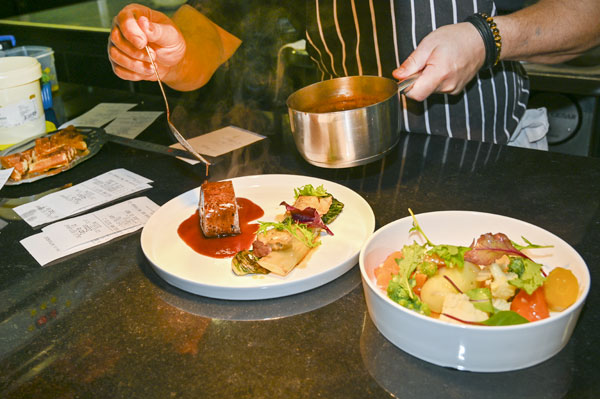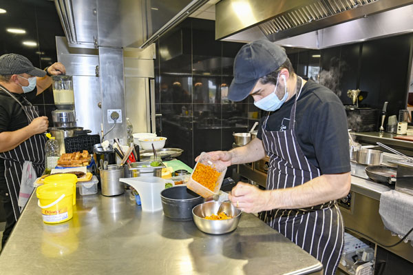 La créativité jumelle des chefs s’exerce sur des produits typiques du terroir en collant au plus près des saisons. A la fin des tomates, les chefs font du ketchup de betterave! Outre leurs amis fournisseurs, ils collaborent avec leurs habitués, comme cette cliente qui leur ramène des clémentines. De même, ils affectionnent les produits propres au Midi, comme le « trulle », un boudin typique Niçois, confectionné spécialement pour eux par leur boucher, ou les « merda di can », des gnocchis à la blette, ou encore les « pelotons de Vescous », des boulettes de farce de daube. De beaux produits locaux que les chefs aiment à mettre « à leur sauce »! Et quand il n’y en a plus, les chefs à la créativité débordante savent rebondir et proposer un autre met savoureux!