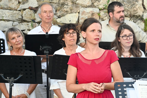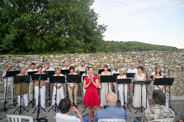 A l’heure où se taisent les cigales et que cessent les hirondelles de dessiner leurs arabesques dans le ciel, se sont élevées les voix pures des chanteuses et celles, profondes, des chanteurs de la Camerata Vocale de Draguignan, sous la direction d’Adèle Pons. Les artistes ont sublimé avec talent les œuvres de compositeurs/arrangeurs de versions actuelles de chansons de la Renaissance, devenues des comptines, livrant une interprétation ravissante, moderne et parfois mêlée d’humour. Fasciné, le public de mélomanes était venu très nombreux pour cette démonstration magistrale: la voix humaine est le plus bel instrument de musique qui soit. La pleine lune a même suspendu son globe d’argent au-dessus du Domaine du Dragon pour écouter!