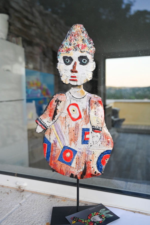 Par des couleurs très vives, une joie de vivre festive, Eddie Copin créé dans ses tableaux et ses sculptures un monde singulier, bien à lui, déjanté et bariolé. Ses thèmes tournent autour de de la mère et de l’enfant, du couple, du bonheur ou encore de la faune et de la flore. Aux frontières du figuratif, de l’insolite et de l’art naïf, ses sculptures expriment le rêve, la joie, le plaisir partagé.